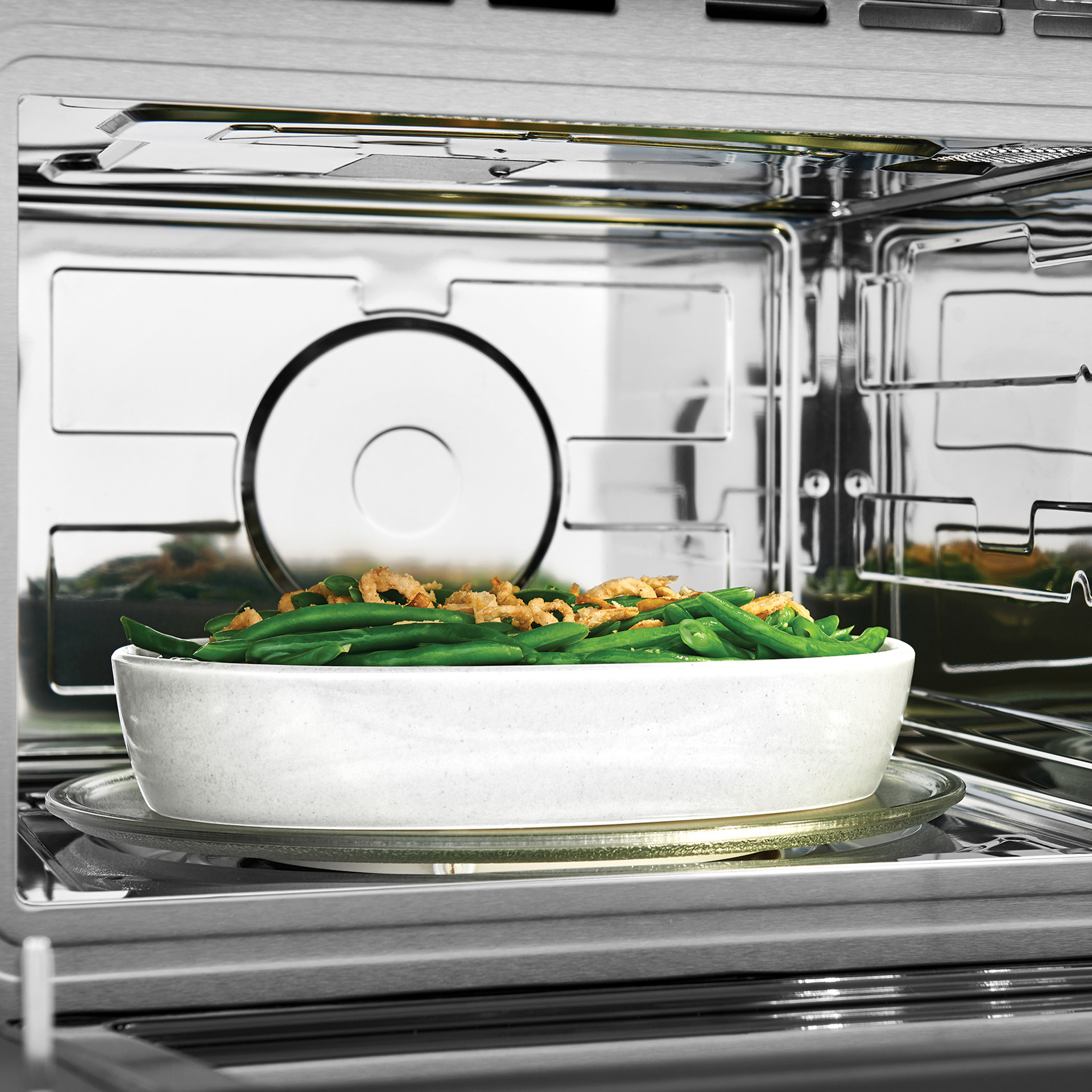 Réchauffez facilement les restes grâce à la fonction de réchauffage par capteur (Sensor Reheat) : les capteurs du micro-ondes ajustent automatiquement la température et la durée afin que vos aliments soient réchauffés à la perfection
