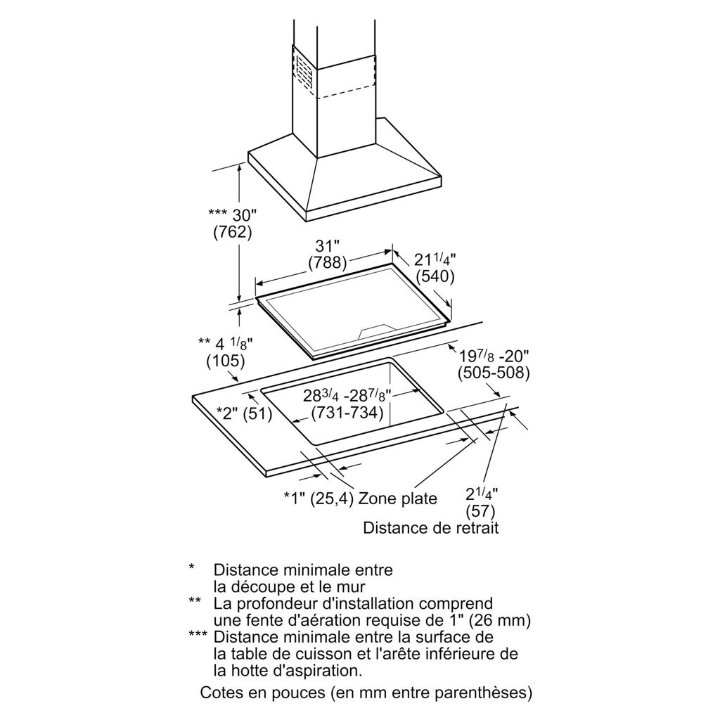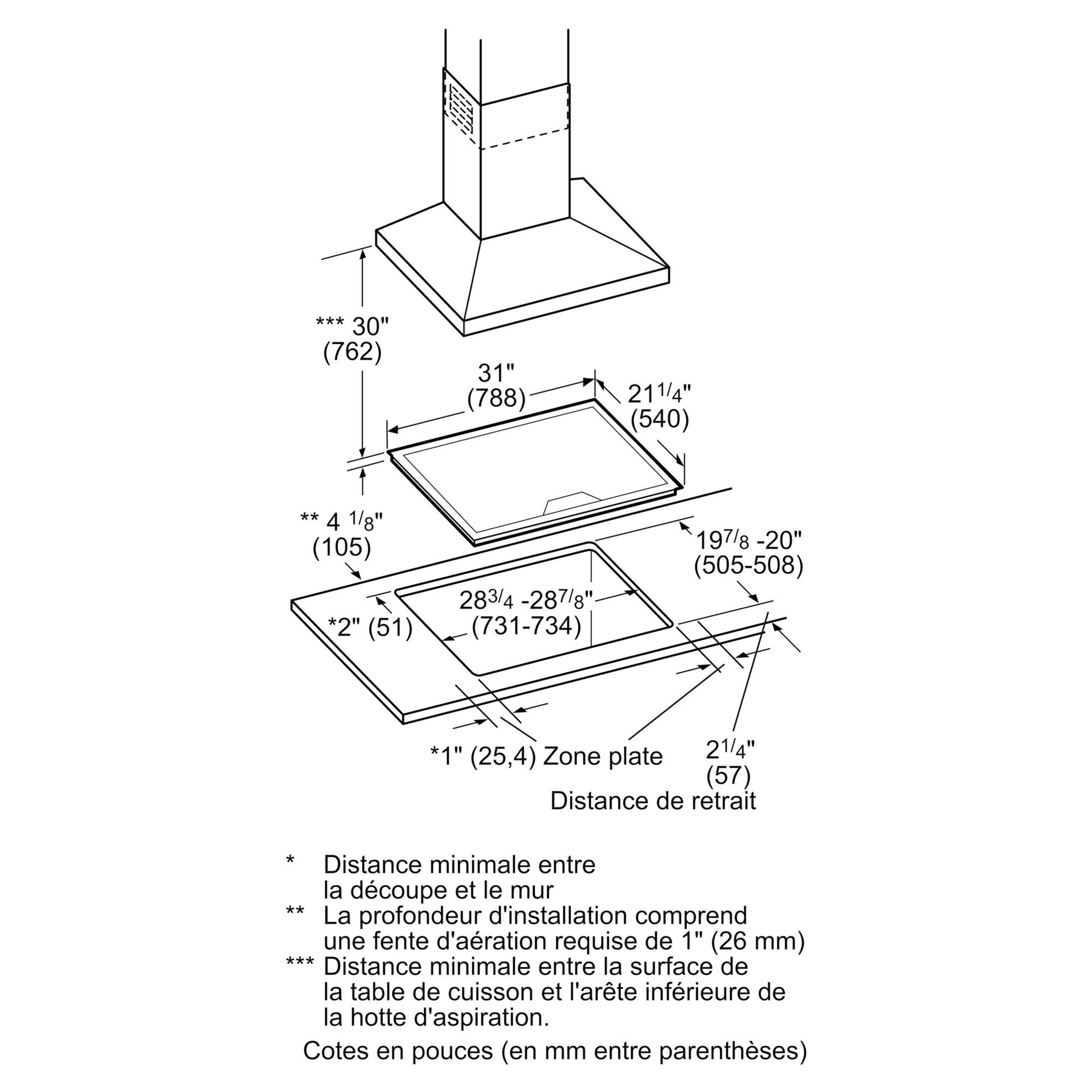 • Largeur de la plaque de cuisson : 30 po