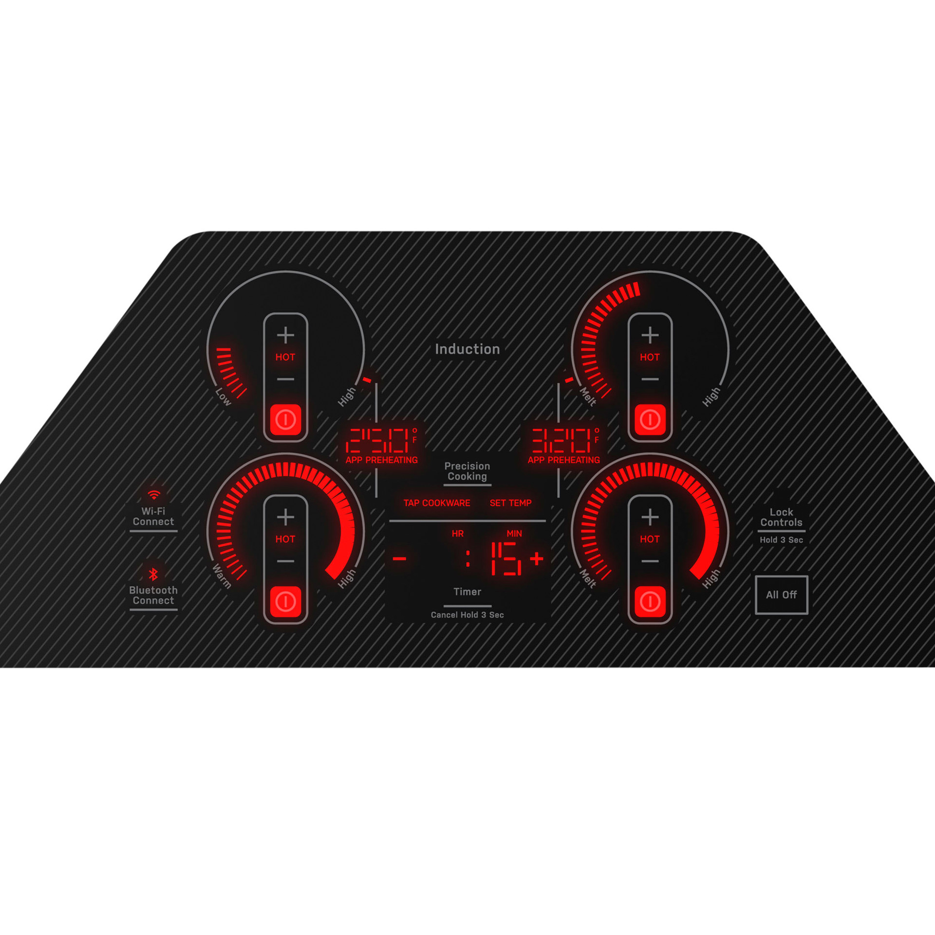 Grâce à la connectivité Wi-Fi intégrée, vous pourrez surveiller et régler les éléments, voir les niveaux de puissance ainsi qu’allumer et éteindre la surface de cuisson.