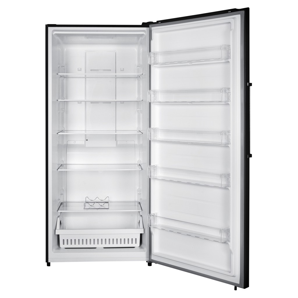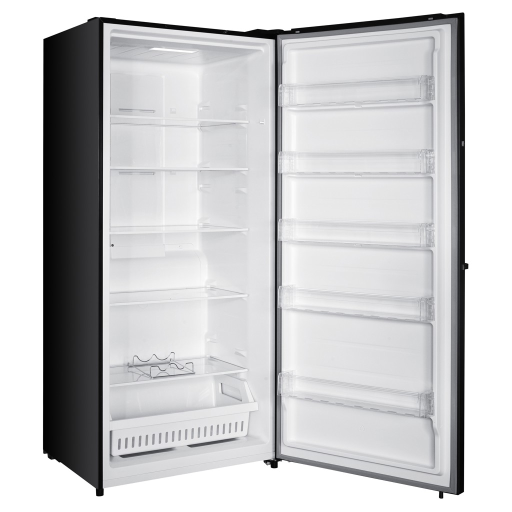 Personnalisez vos besoins de rangement avec cet élégant réfrigérateur/congélateur vertical convertible Marathon Black Steel de 21,2 pi³. Comprend un fonctionnement économe en énergie sans givre, des commandes et un affichage électroniques extérieurs, 5 tablettes en verre trempé, un casier à vin chromé et 5 balconnets de porte pleine longueur.