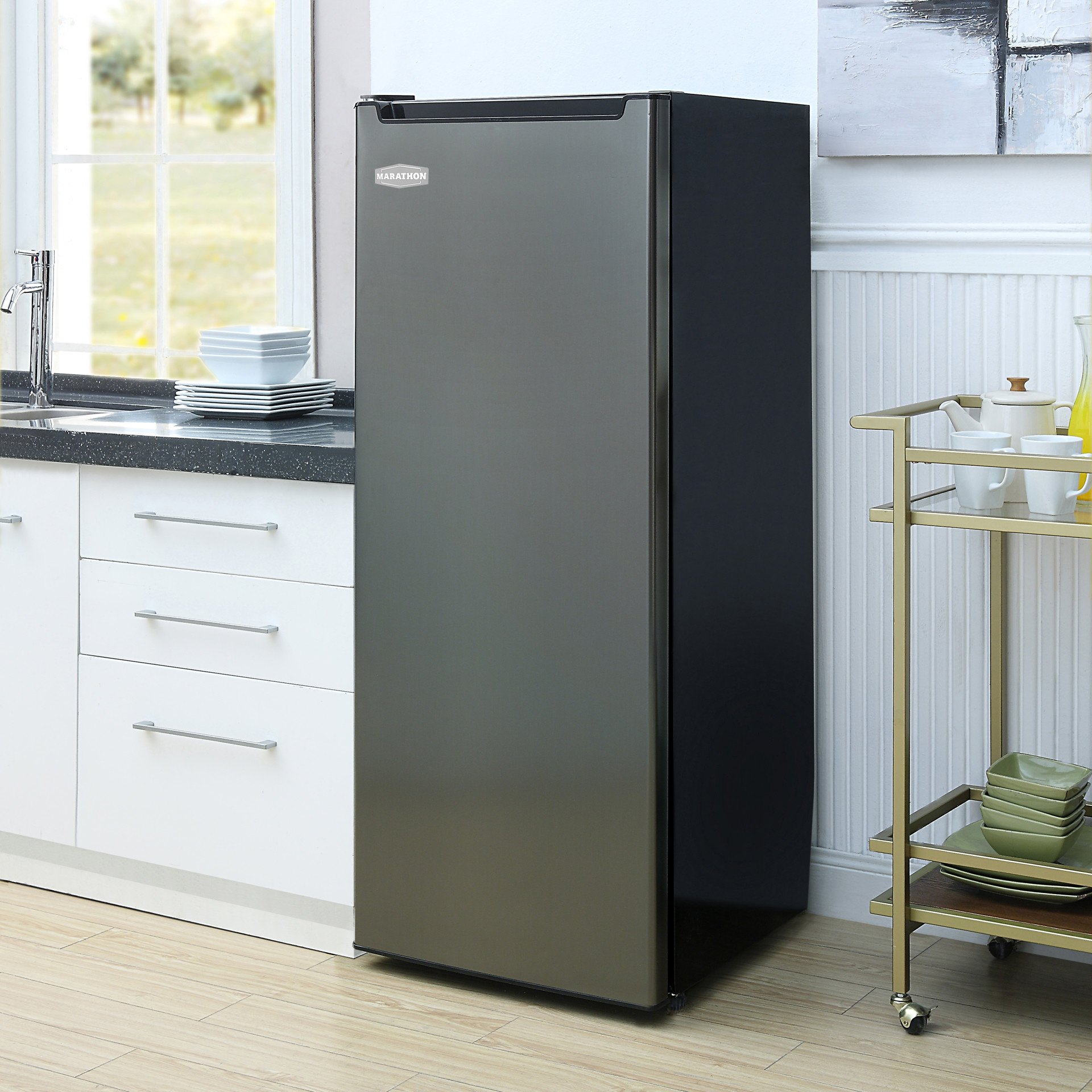 Le congélateur vertical Marathon de 6,5 pi3, au fini acier noir, est idéal comme congélateur vertical autonome ou comme combinaison parfaite avec le réfrigérateur Marathon assorti.