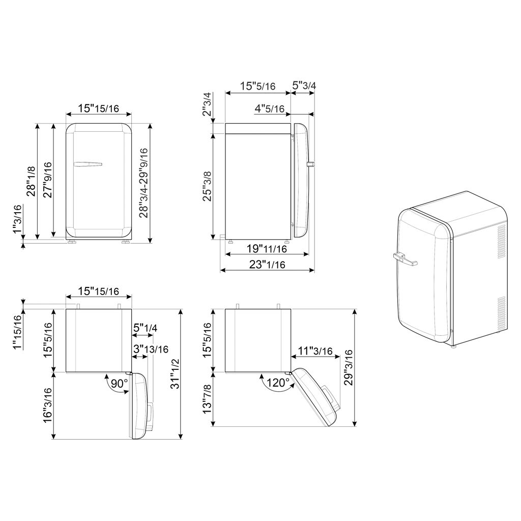 Tout réfrigérateur compact 1.5 pi³ - 16 po Smeg FAB5URPG3