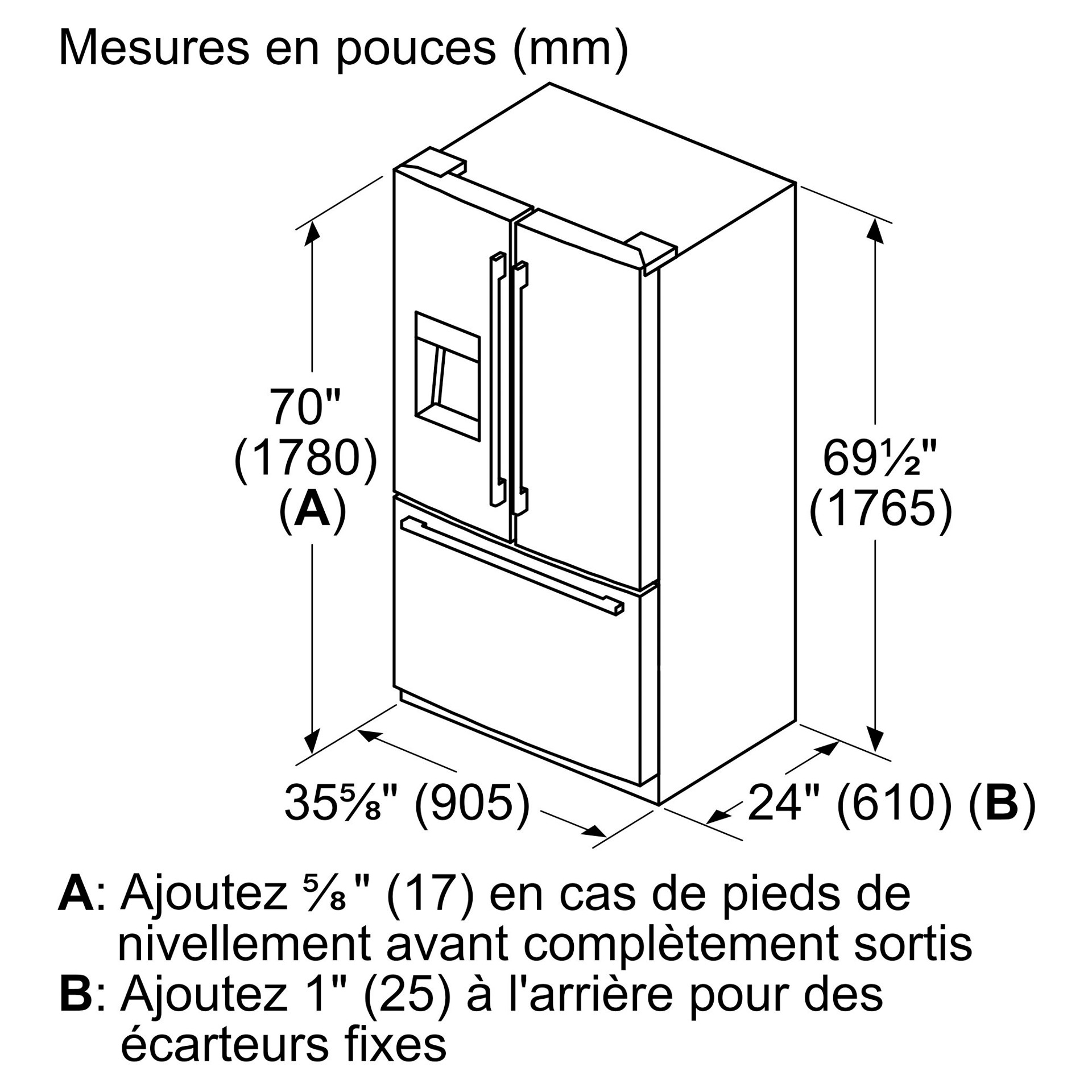 Réfrigérateur à double porte 36 po - 21.6 pi3