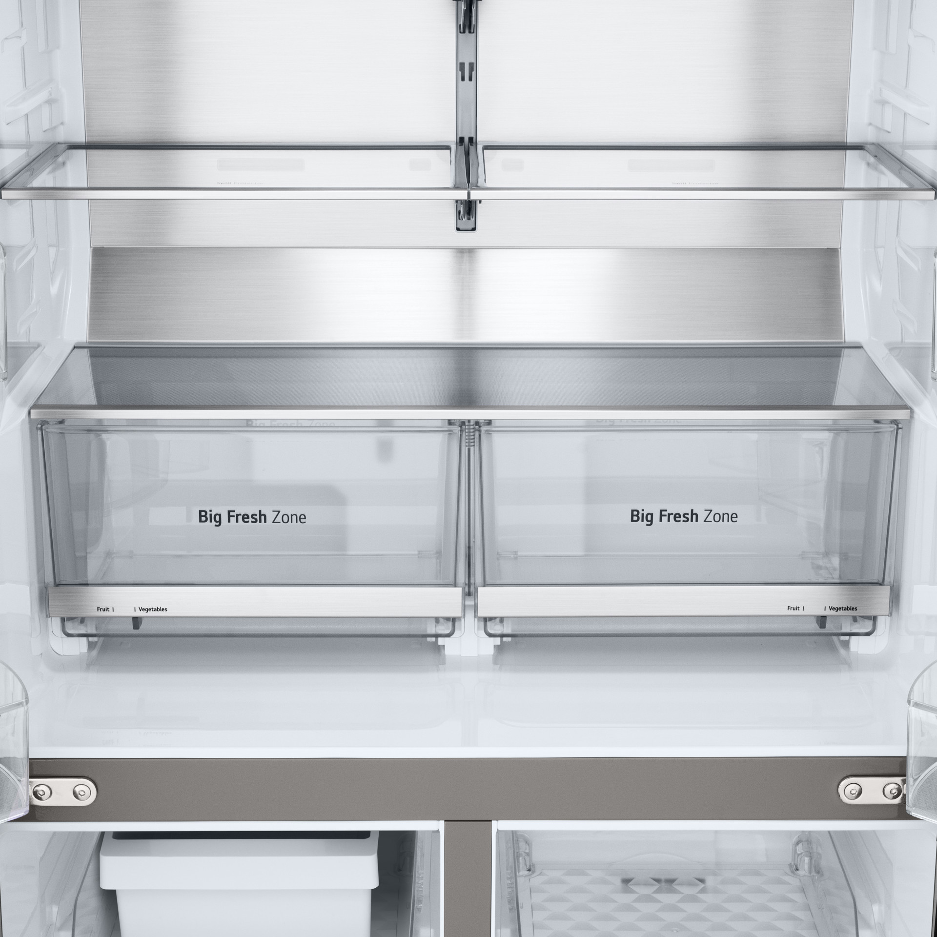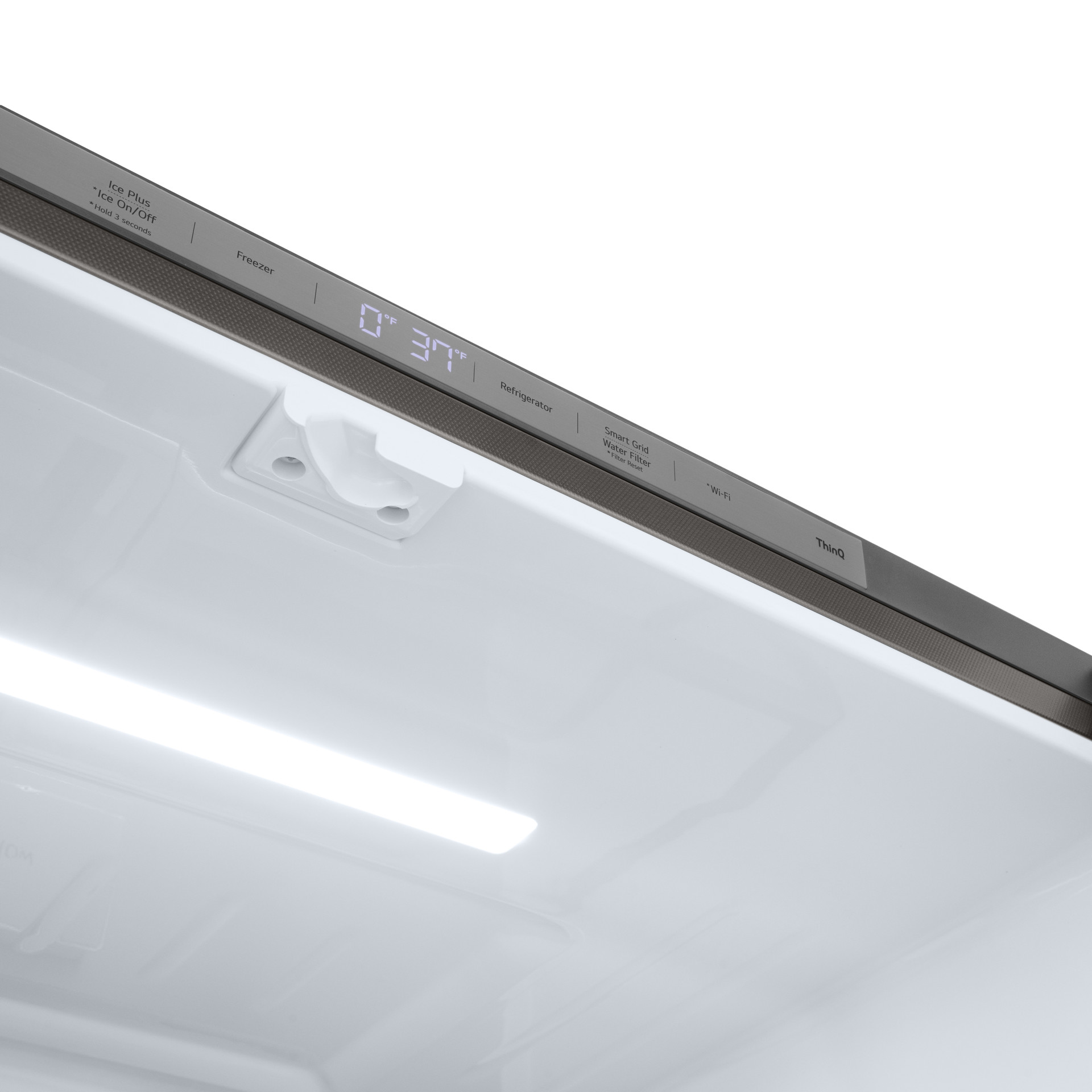 Les panneaux plats sont agrémentés de poignées dissimulées discrètes qui offrent un accès facile. Cette nouvelle conception de LG ajoute un style contemporain à ce refrigérateur.