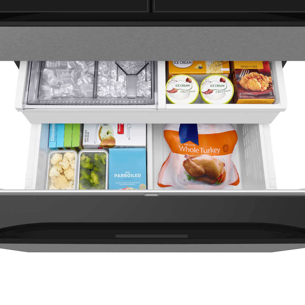 AI Vision Inside utilise une caméra interne pour identifier certains aliments frais et vous aide à enregistrer les aliments fréquemment utilisés ajoutés ou retirés, afin que la liste des aliments soit automatiquement mise à jour. Elle vous permet également de visualiser les bacs de porte, de trouver des idées de recettes et de gérer la date limite de consommation.