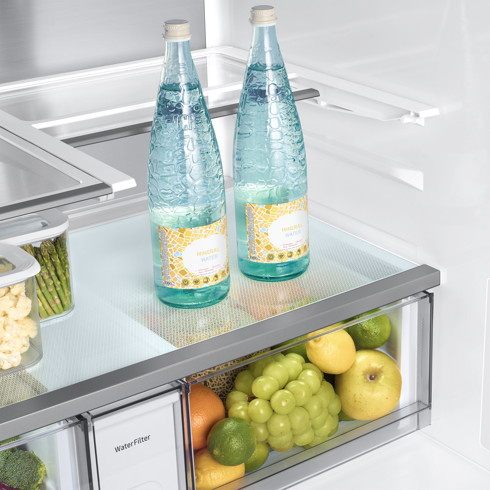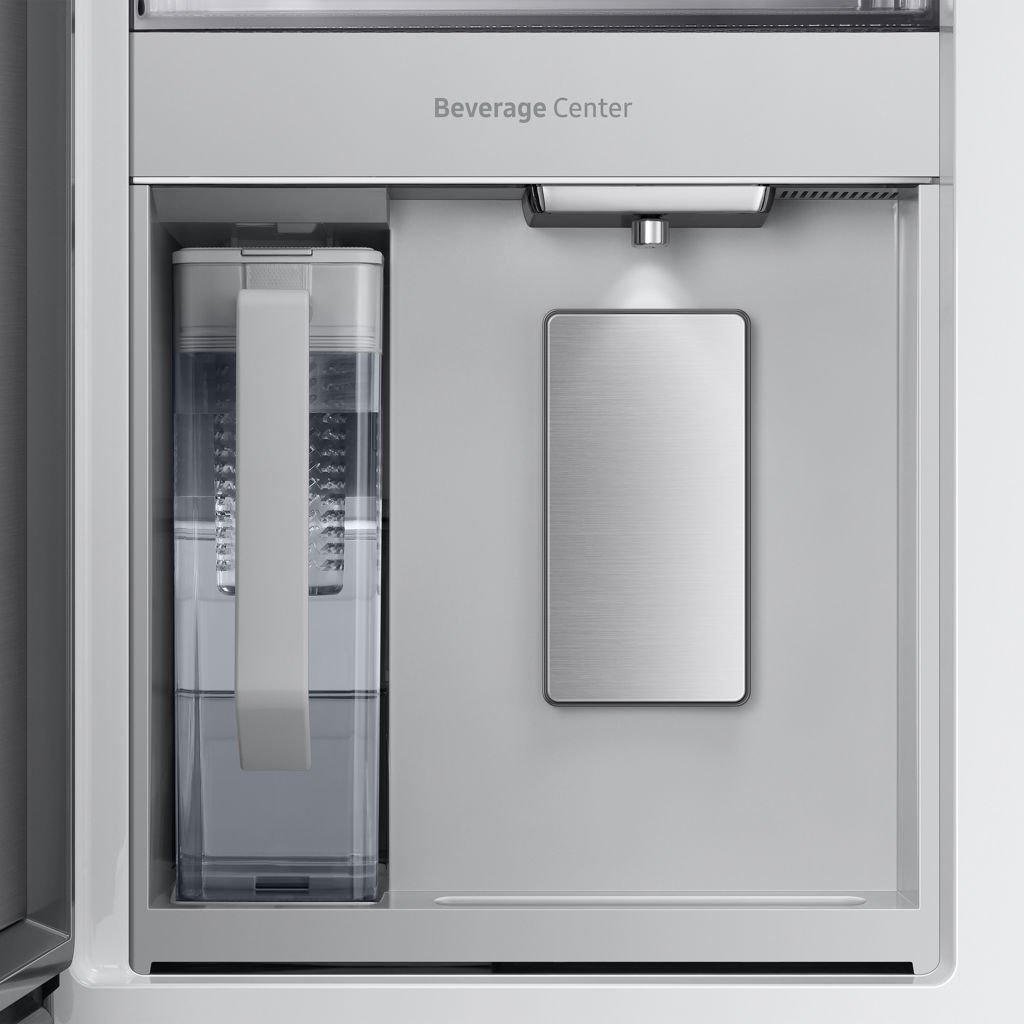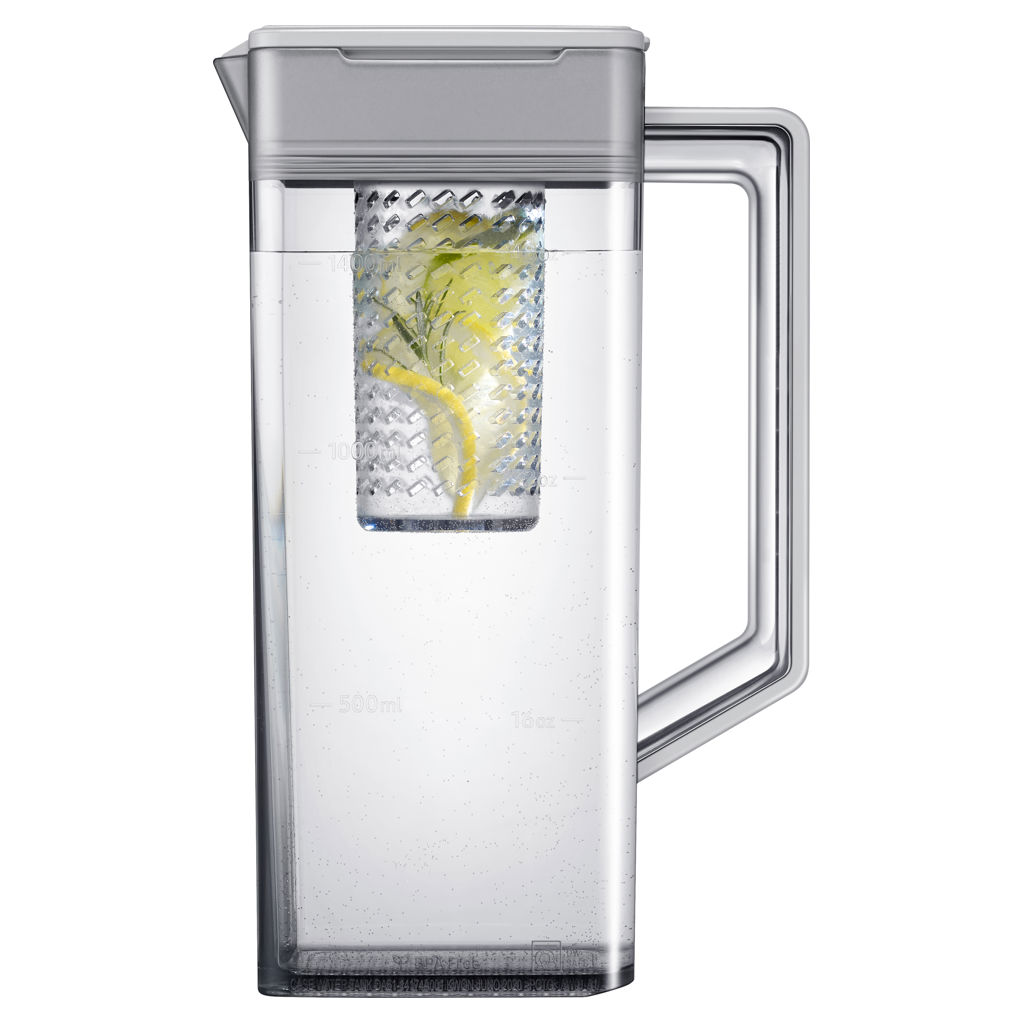 Savourez une eau fraîche et aromatisée. Le Beverage Center™ est situé à l'intérieur du réfrigérateur, réduisant ainsi les risques de contamination. Outre un distributeur d'eau, il est équipé d'une carafe à eau de 1.4 L à remplissage automatique, compatible lave-vaisselle et sans BPA, pour une eau purifiée, infusée avec des fruits ou des herbes.