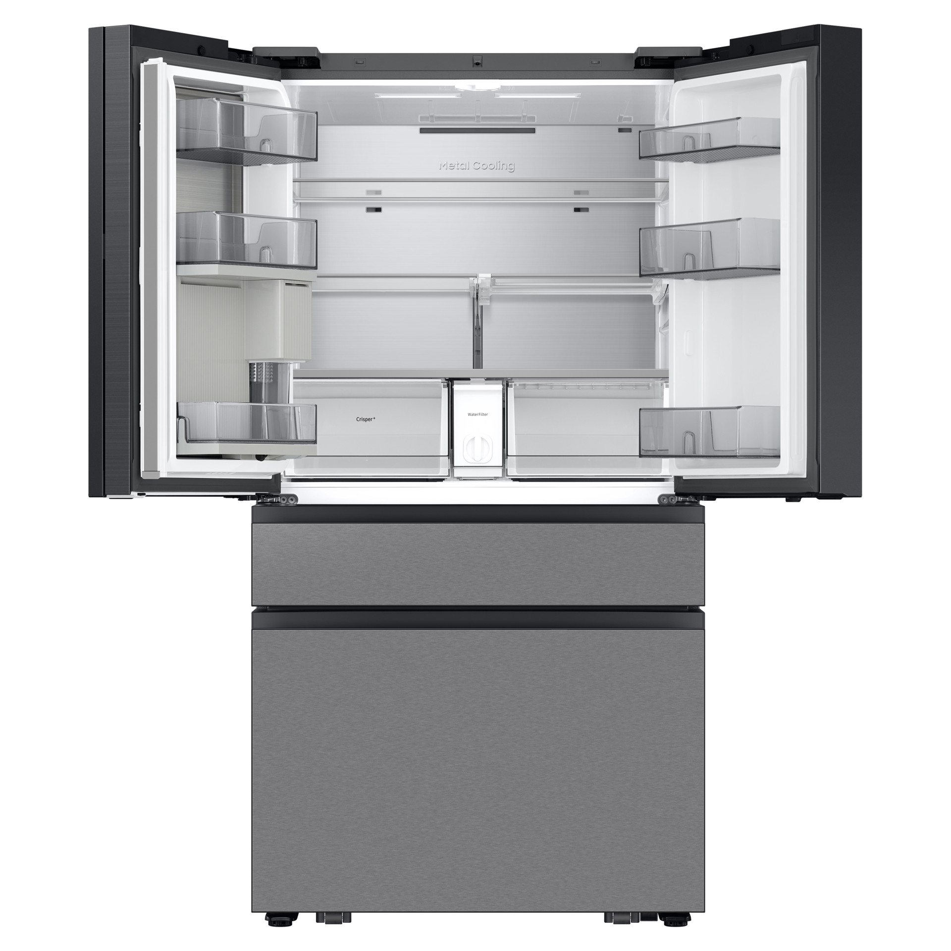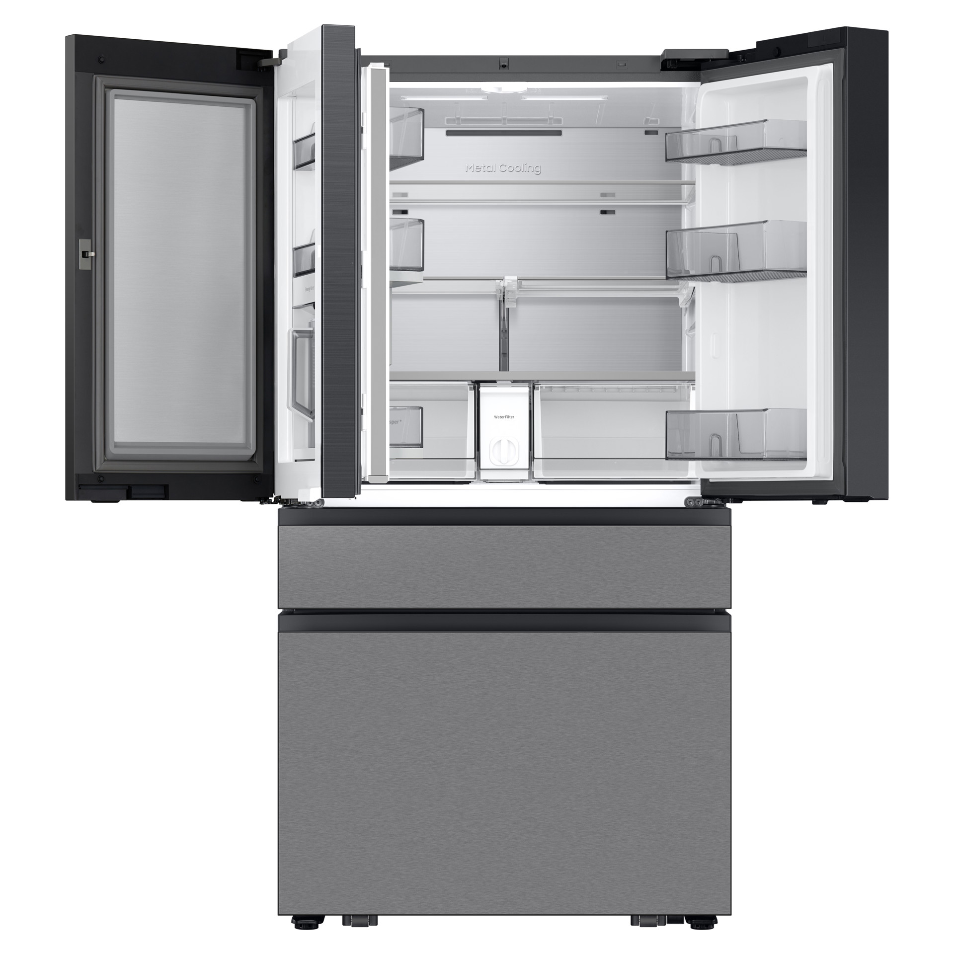 Ouvrez votre réfrigérateur sans effort ! Les portes à ouverture automatique sont équipées de capteurs tactiles. Un simple effleurement suffit pour ouvrir automatiquement les portes. Vous accédez ainsi facilement à vos aliments, même les mains pleines. De plus, sans poignées, il est élégant et épuré.