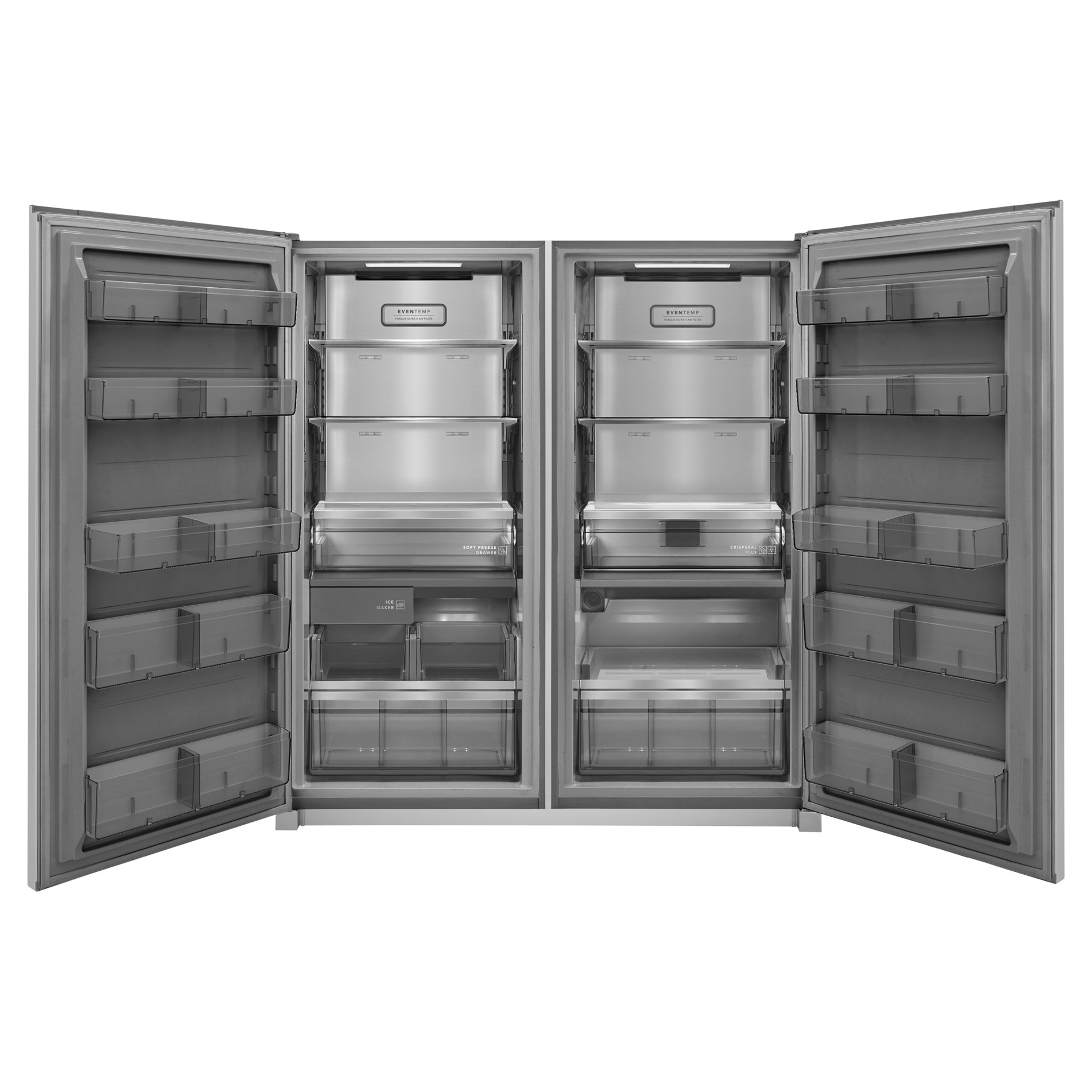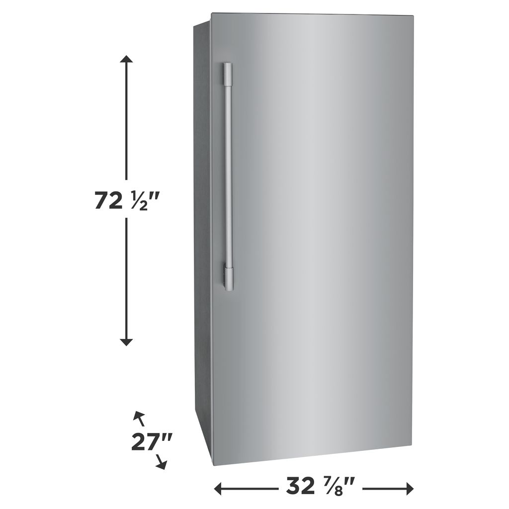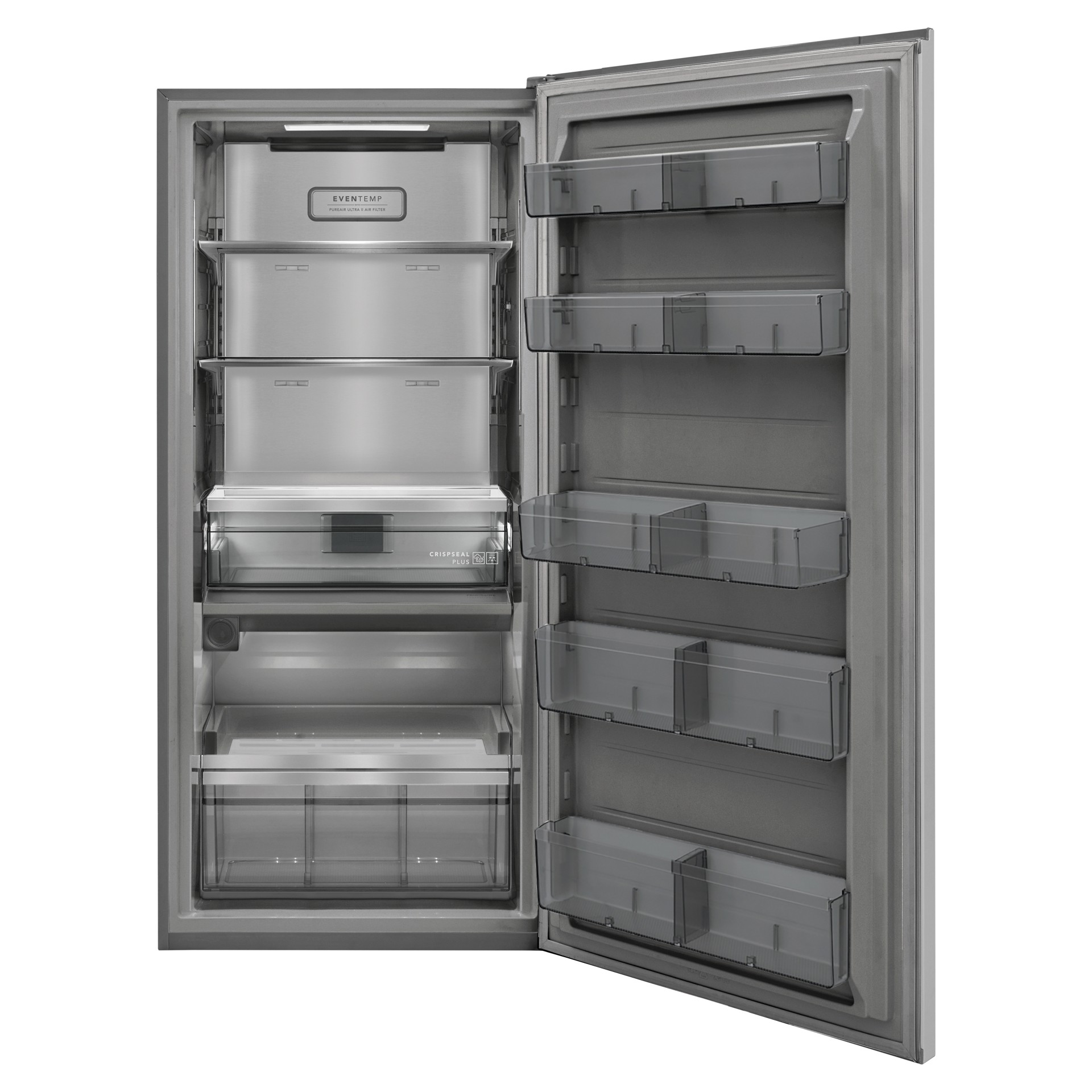 Le réfrigérateur à une porte Frigidaire Professional Smudge-Proof® en acier inoxydable offre un design professionnel remarquable et un contrôle uniforme de la température grâce au système de refroidissement EvenTemp™ et la possibilité de ranger facilement jusqu'à 7 sacs d'épicerie.
