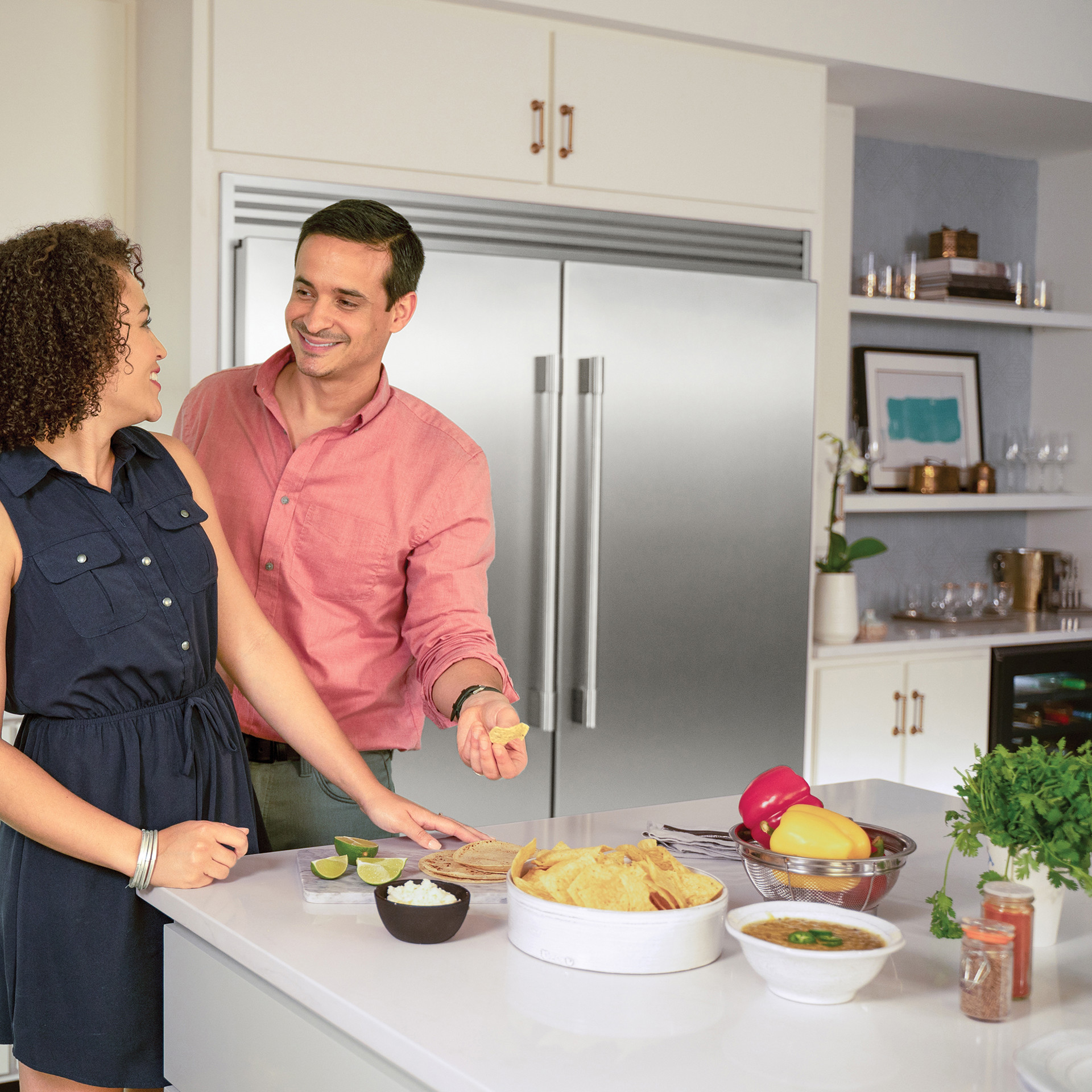 Passez à une allure intégrée qui attirera l'attention avec notre réfrigérateur à porte unique et personnalisez votre cuisine avec la trousse de garnitures optionnelle et la capacité à placer le réfrigérateur et le congélateur ensemble ou éloignés