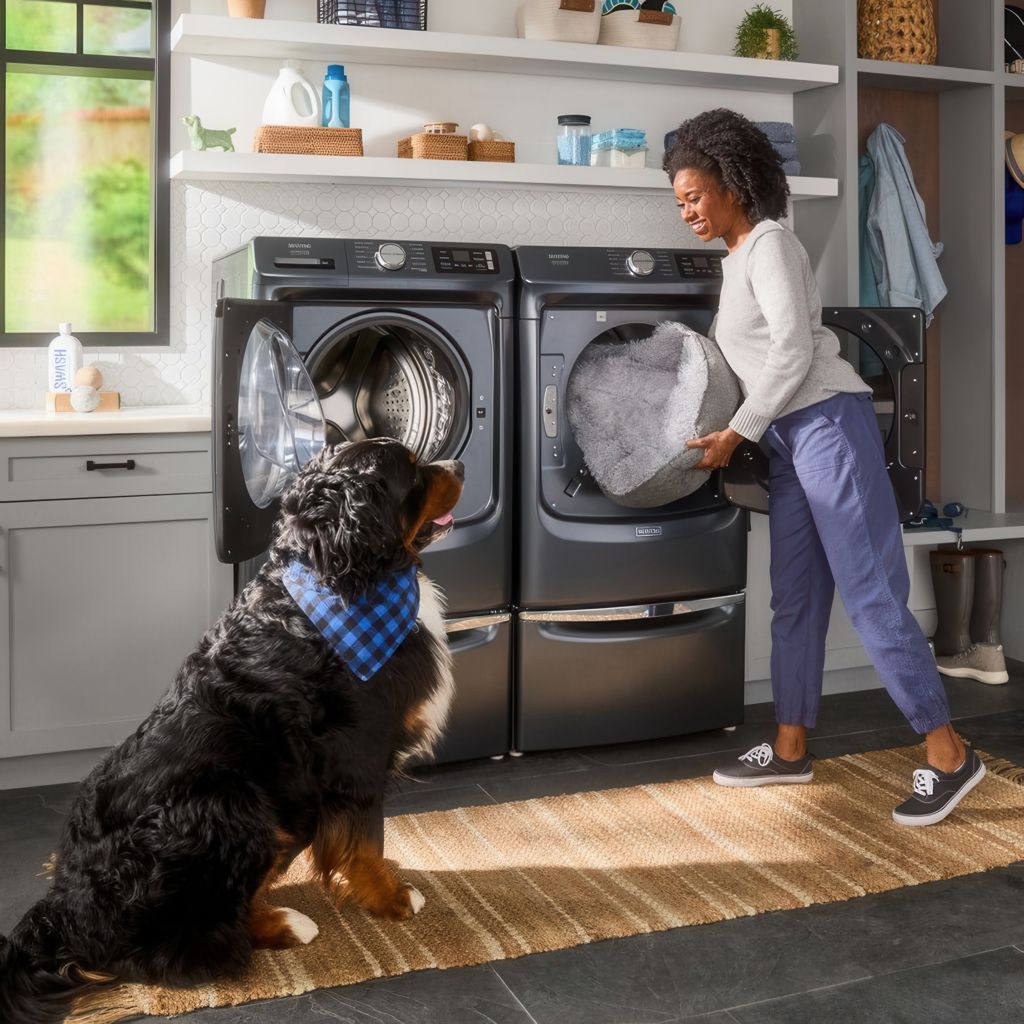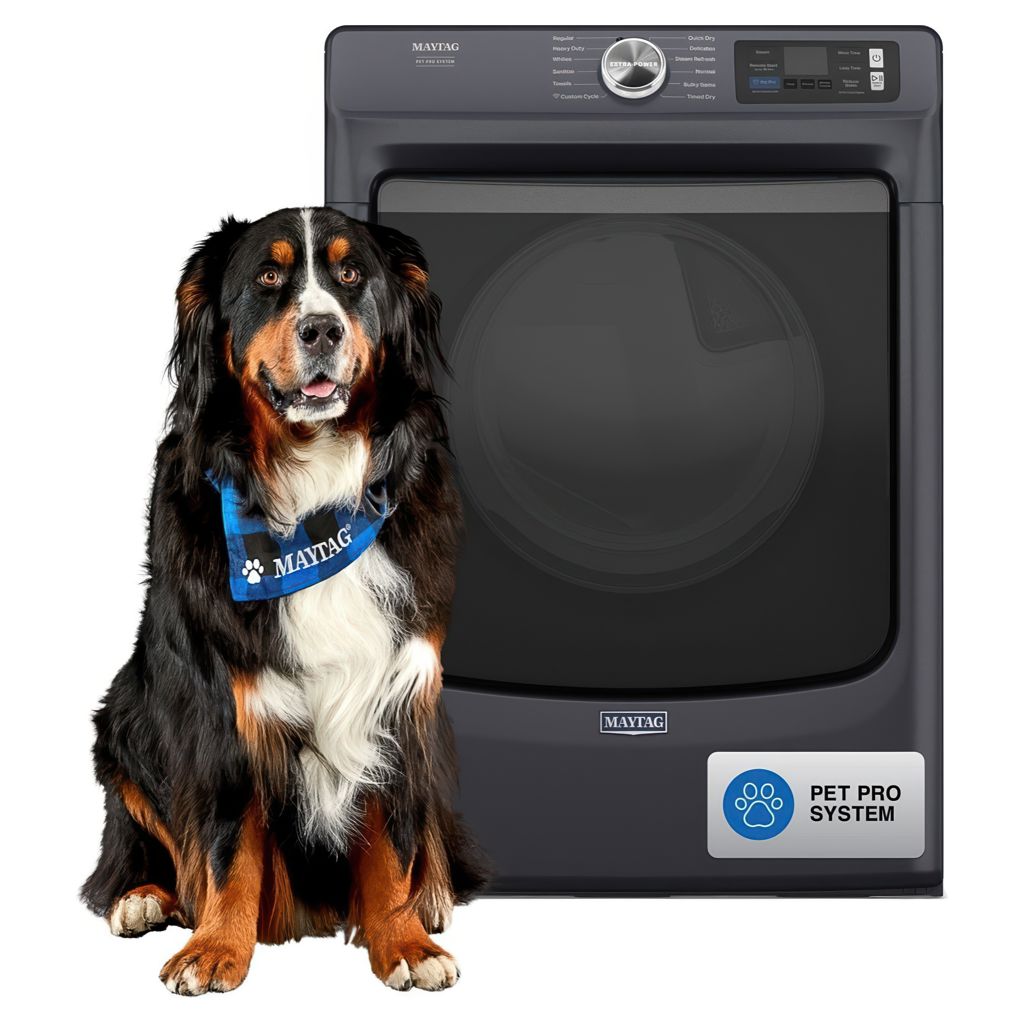 La sécheuse Pet Pro de Maytag® retient et élimine les poils d'animaux des vêtements. L'option Pet Pro soulève et capture les poils d'animaux des vêtements sur certains cycles et les emprisonne dans le filtre à charpie.