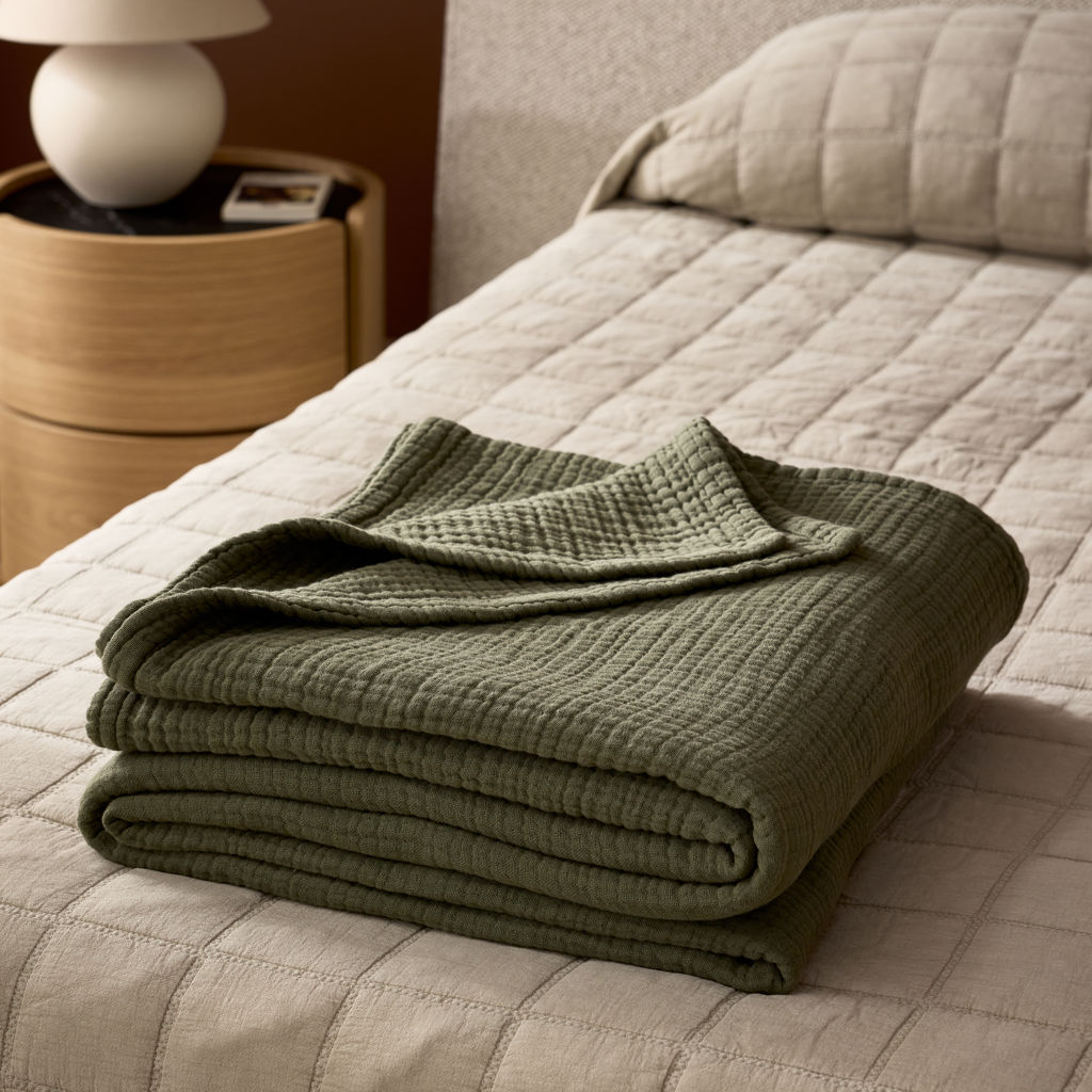 Apportez une touche de confort léger et de raffinement à votre chambre grâce à cette couverture en mousseline de coton au tissage 4 plis. Parfaite pour toutes les saisons, elle enveloppe vos nuits de douceur et d’élégance naturelle.