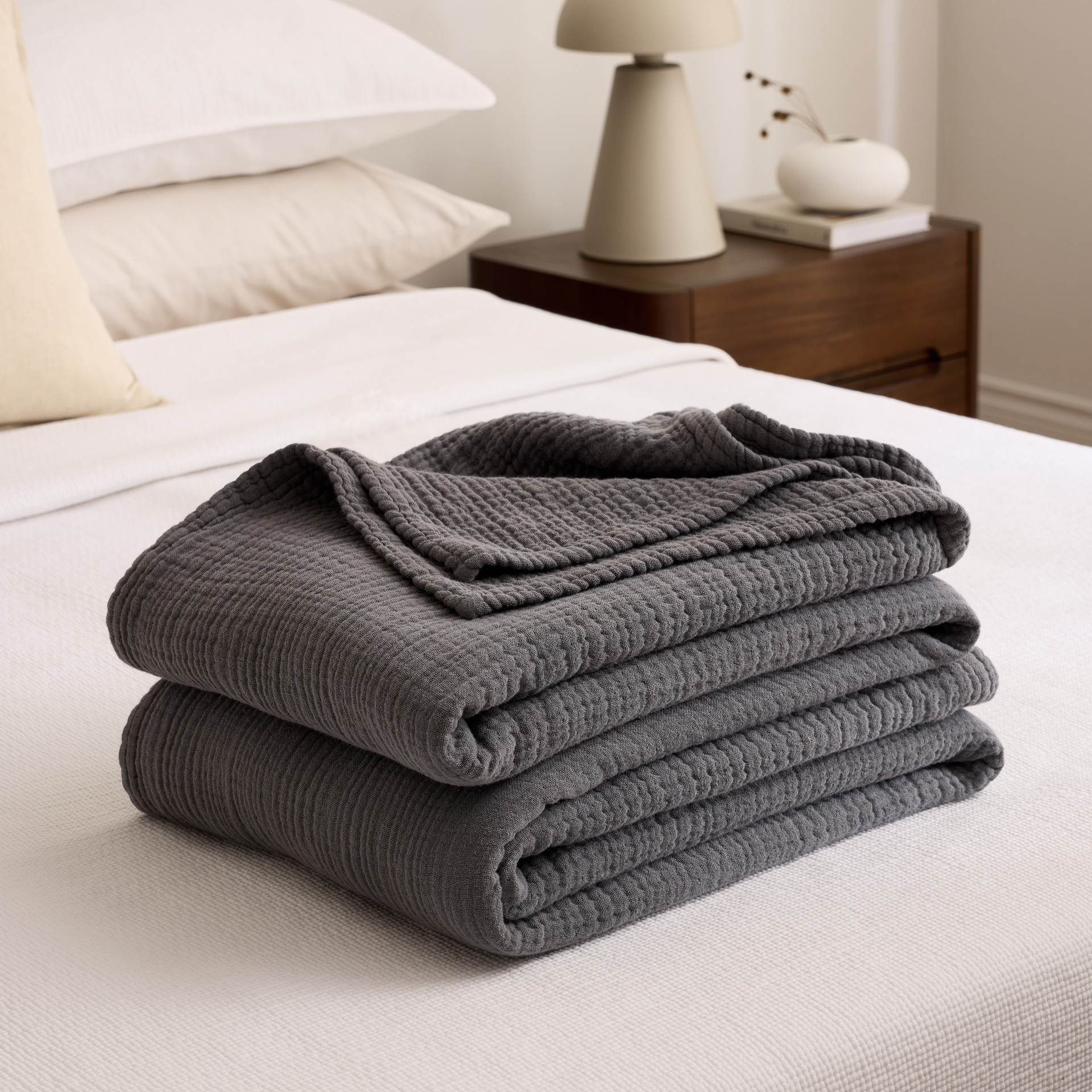Apportez une touche de confort léger et de raffinement à votre chambre grâce à cette couverture en mousseline de coton au tissage 4 plis. Parfaite pour toutes les saisons, elle enveloppe vos nuits de douceur et d’élégance naturelle.