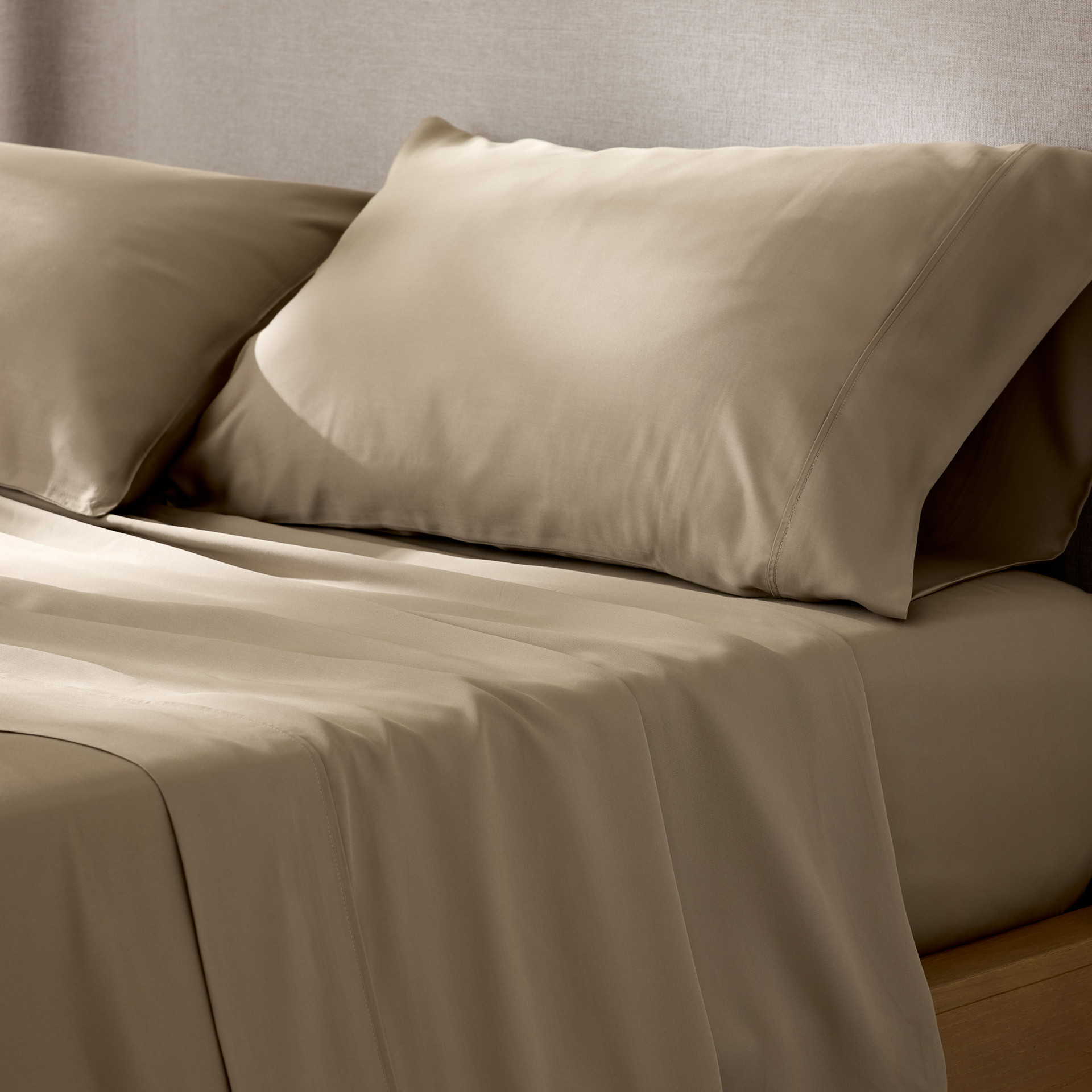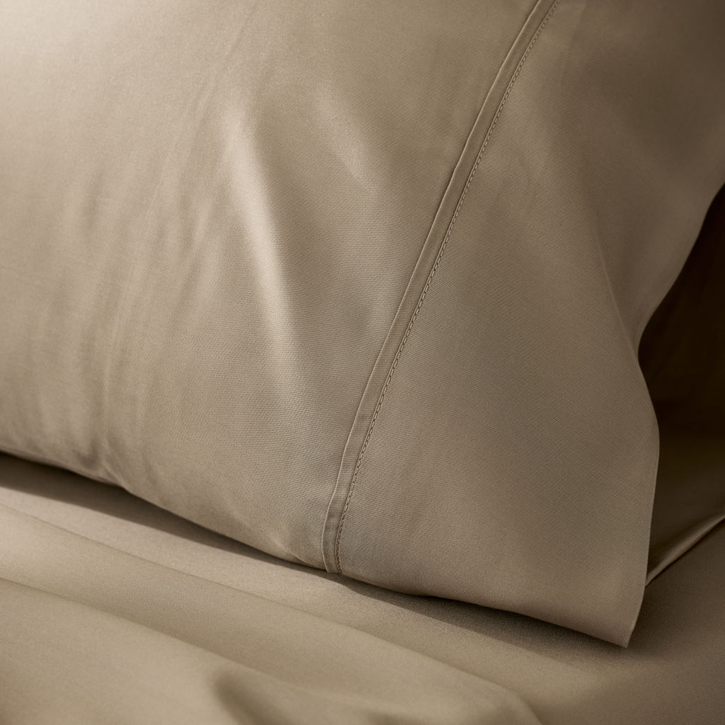 300 fils au pouce carré, avec un tissage satiné pour un confort doux et soyeux. Fibres arrondies et polies ultra respirantes qui évacuent l'humidité rapidement.