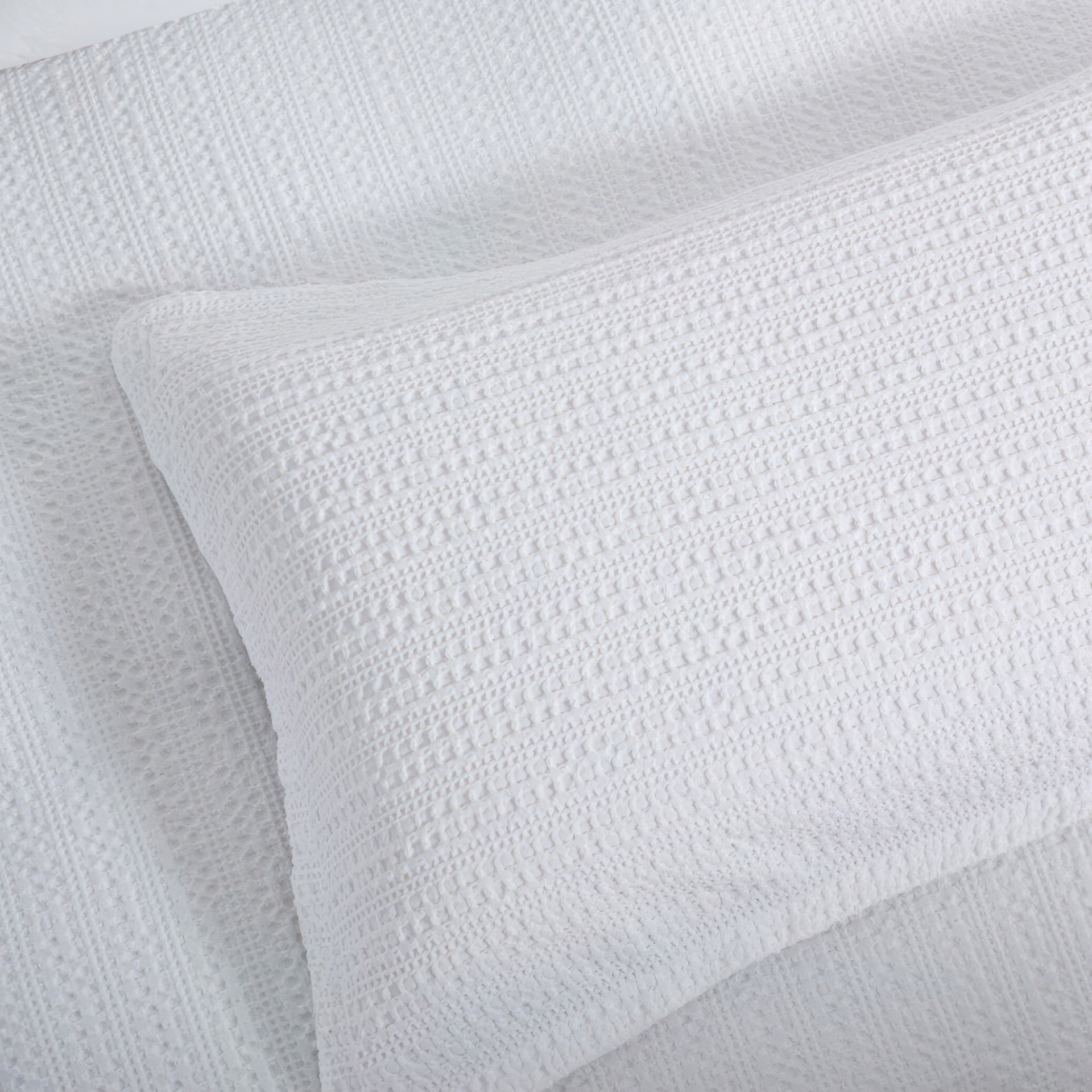 Notre ensemble housse de couette et taie décorative Solene White est tissé dans une gaufre en échelle ajoutant un intérêt texturé à votre lit.