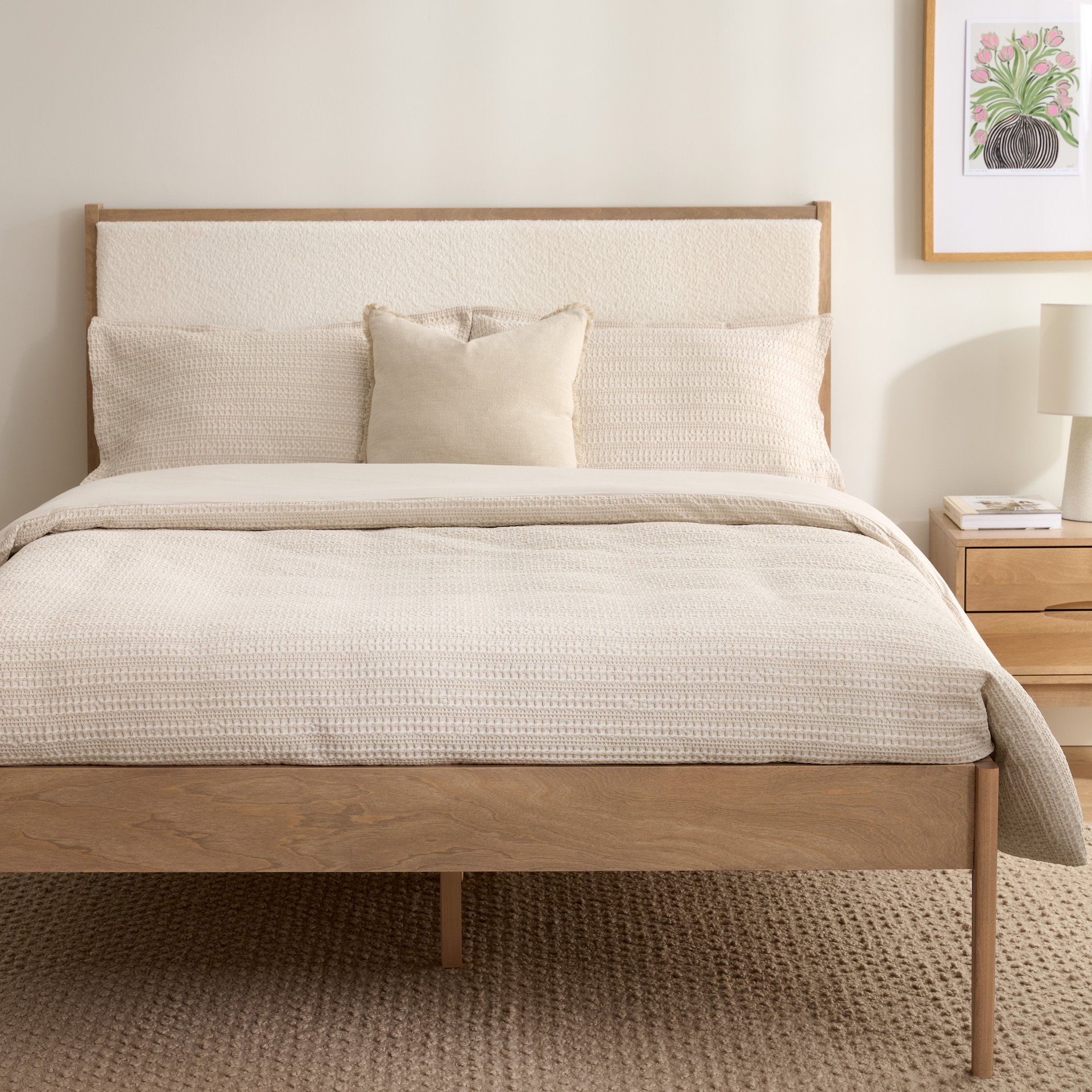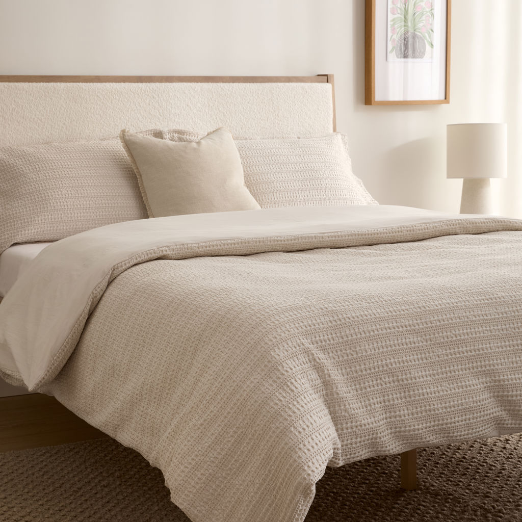 Notre ensemble housse de couette et taie décorative Solene Flax est tissé dans une gaufre en échelle ajoutant un intérêt texturé à votre lit.