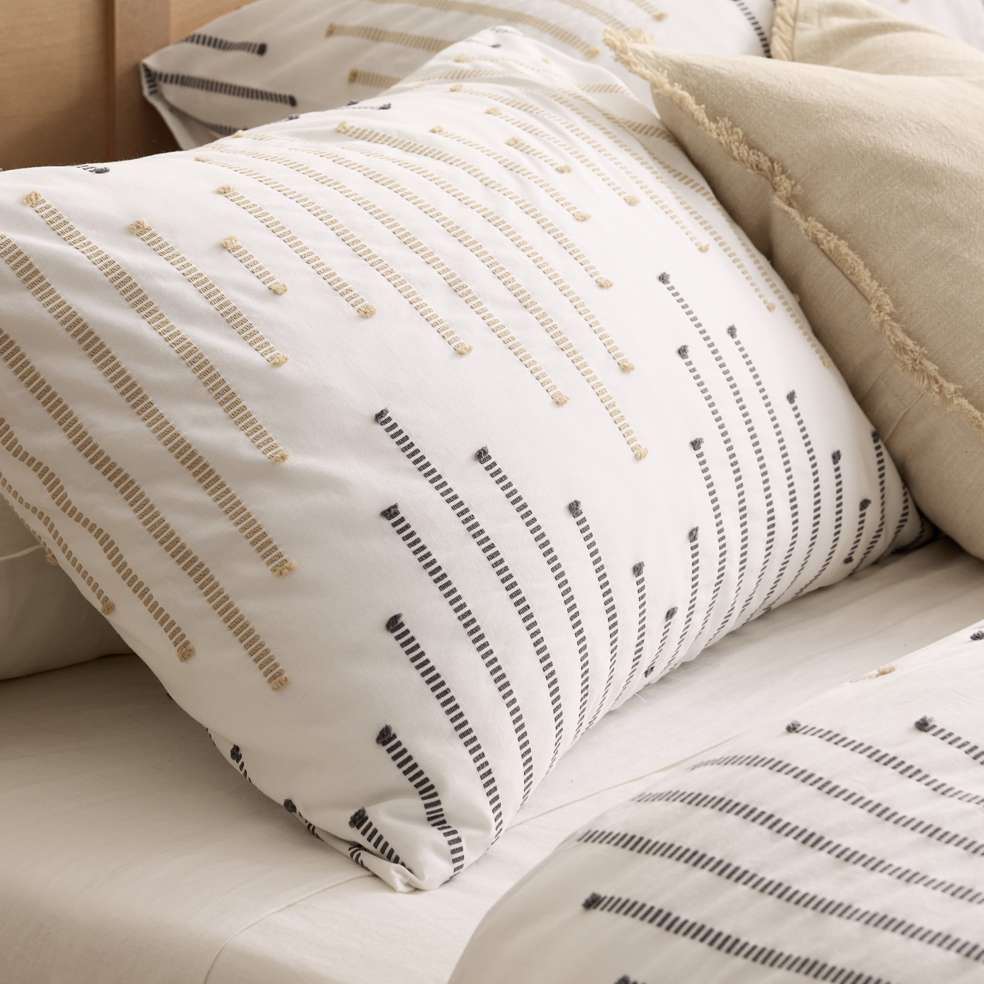L´ensemble de housse de couette IPANEMA apportera une touche intemporelle à votre chambre à coucher. Il comprend une housse de couette et 2 cache oreillers king (20x36 pouces), fabriqué dans un coton de haute qualité.