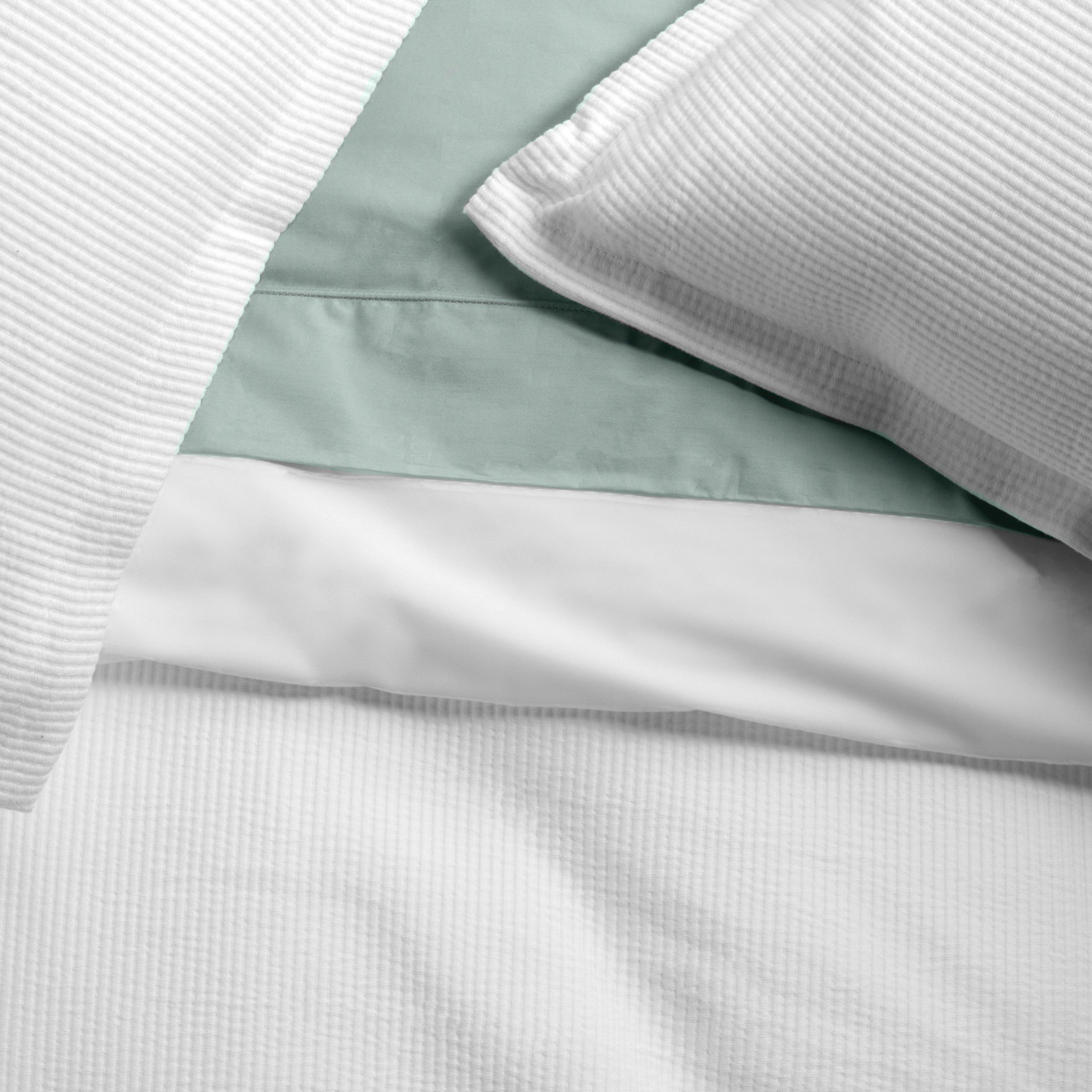 - Housse de couette Sophia : 106x92 po, 100% coton côtelé & 100% coton percale 200 fils.