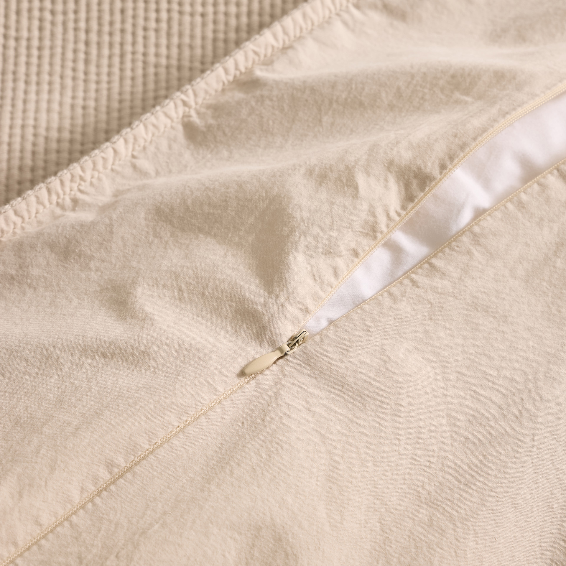 Conçue avec soin au Portugal, la housse de couette Sophia se distingue par son coton tissé en côtes, apportant structure et caractère à votre chambre, tandis que l'envers en coton percale vous enveloppe de douceur et de réconfort. Légèrement plus dense qu'une housse de couette ordinaire, elle favorise un sommeil réparateur et est particulièrement apaisante pour ceux qui sont sujets à l'anxiété et au stress.