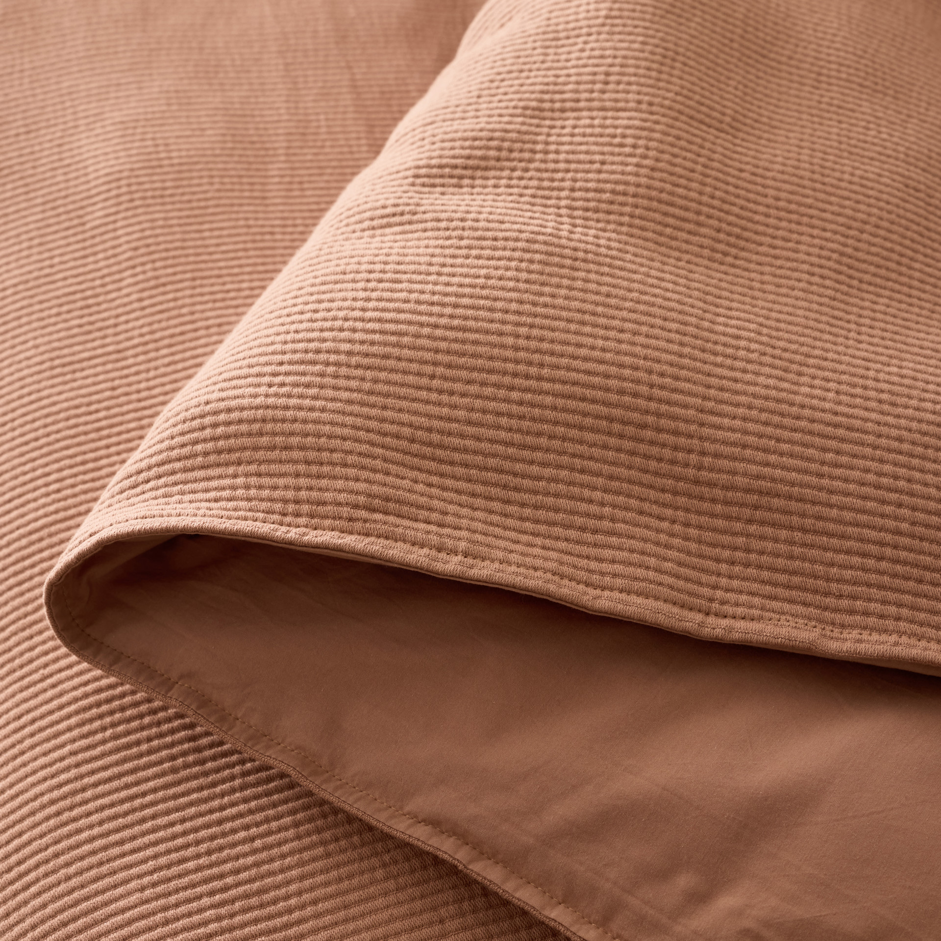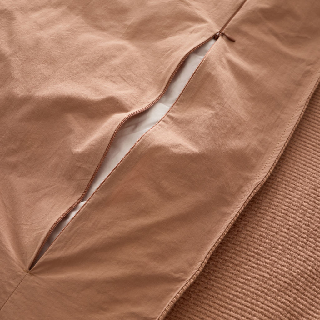 Conçue avec soin au Portugal, la housse de couette Sophia se distingue par son coton tissé en côtes, apportant structure et caractère à votre chambre, tandis que l'envers en coton percale vous enveloppe de douceur et de réconfort. Légèrement plus dense qu'une housse de couette ordinaire, elle favorise un sommeil réparateur et est particulièrement apaisante pour ceux qui sont sujets à l'anxiété et au stress.