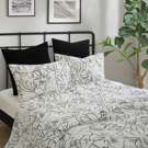 L'ensemble de housse de couette Noah présente un imprimé botanique noir sur blanc, offrant une esthétique contemporaine et chic.