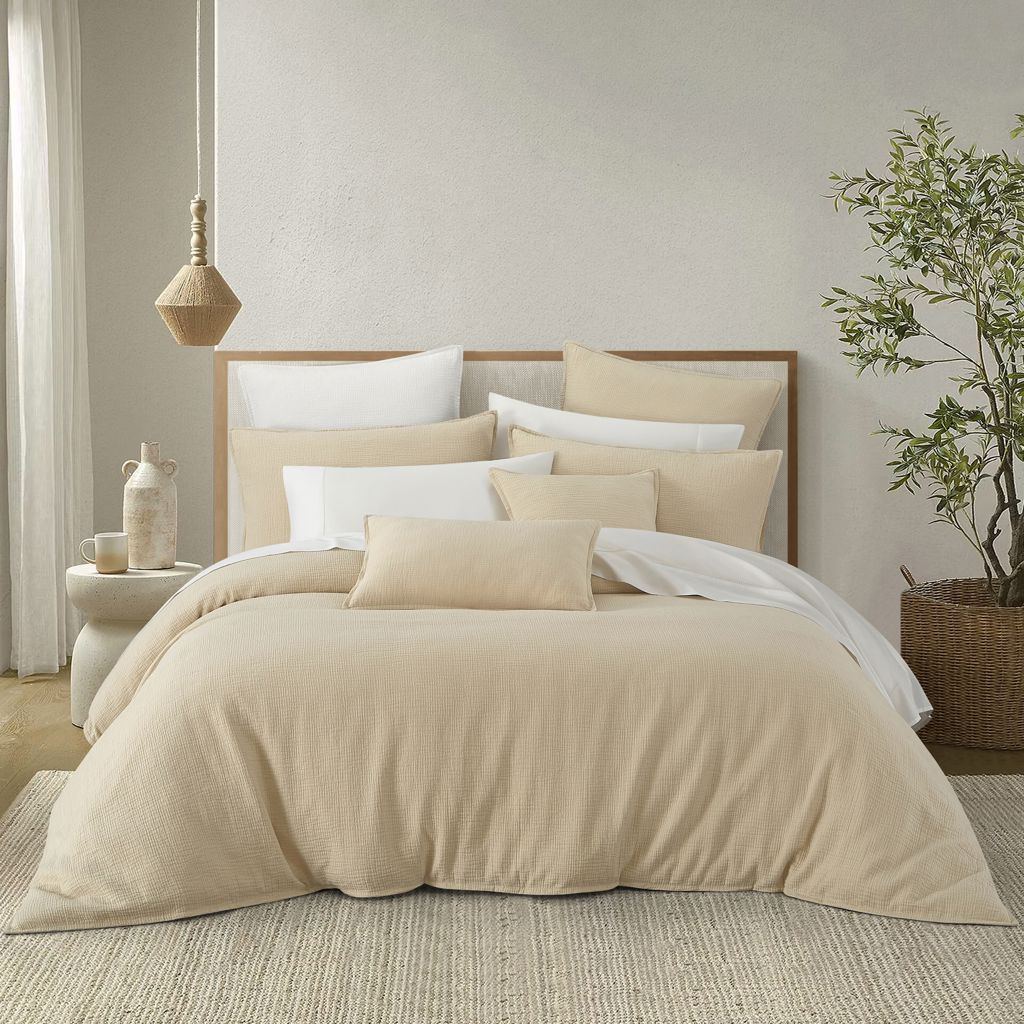 Fabriqué en 100 % coton, le devant présente une texture matelassée prélavée, tandis que l'envers est fabriqué en percale de coton lavé 200 fils au pouce carré, offrant un toucher doux et une bonne respirabilité.