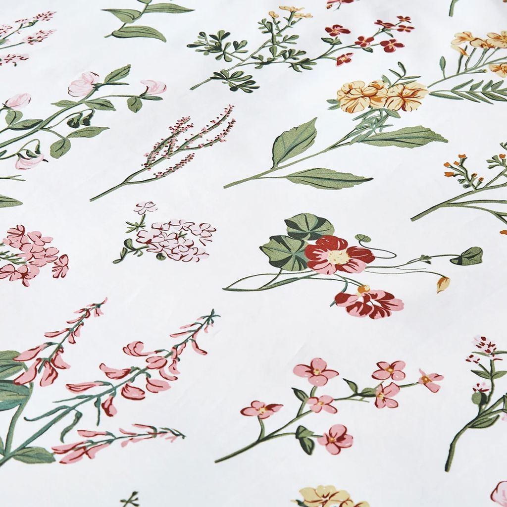 L'ensemble de housse de couette Chelsea se compose d'un jardin de fleurs roses, jaunes et rouges, apportant toute l'année l'esprit frais du printemps dans votre chambre.