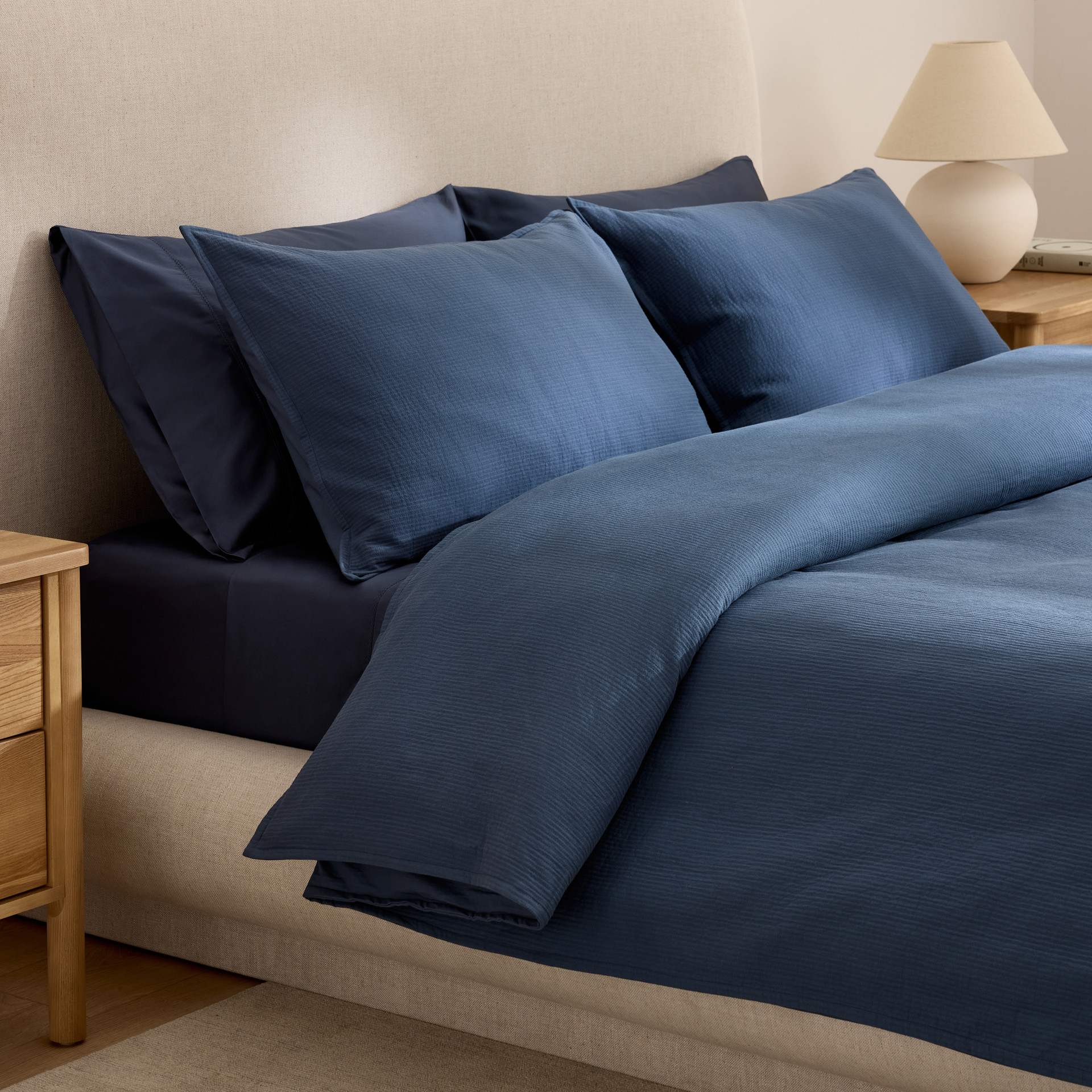 Son tissu doux et texturé crée une ambiance apaisante, idéale pour un confort au quotidien.