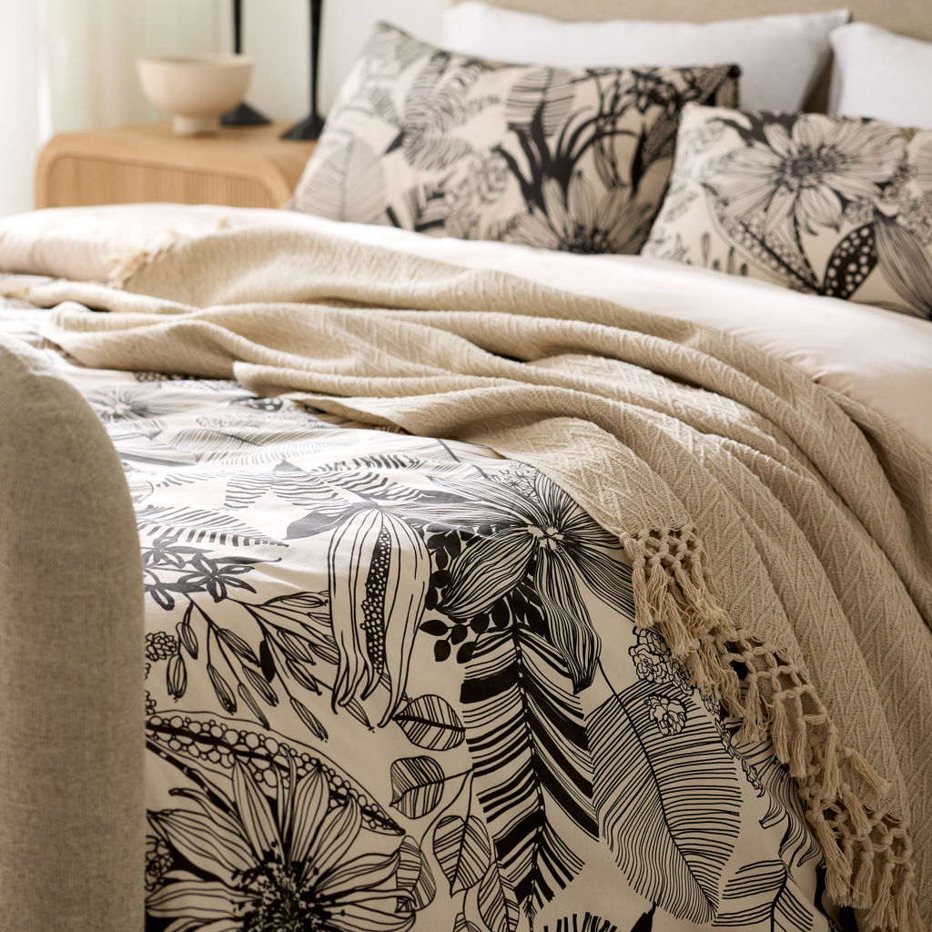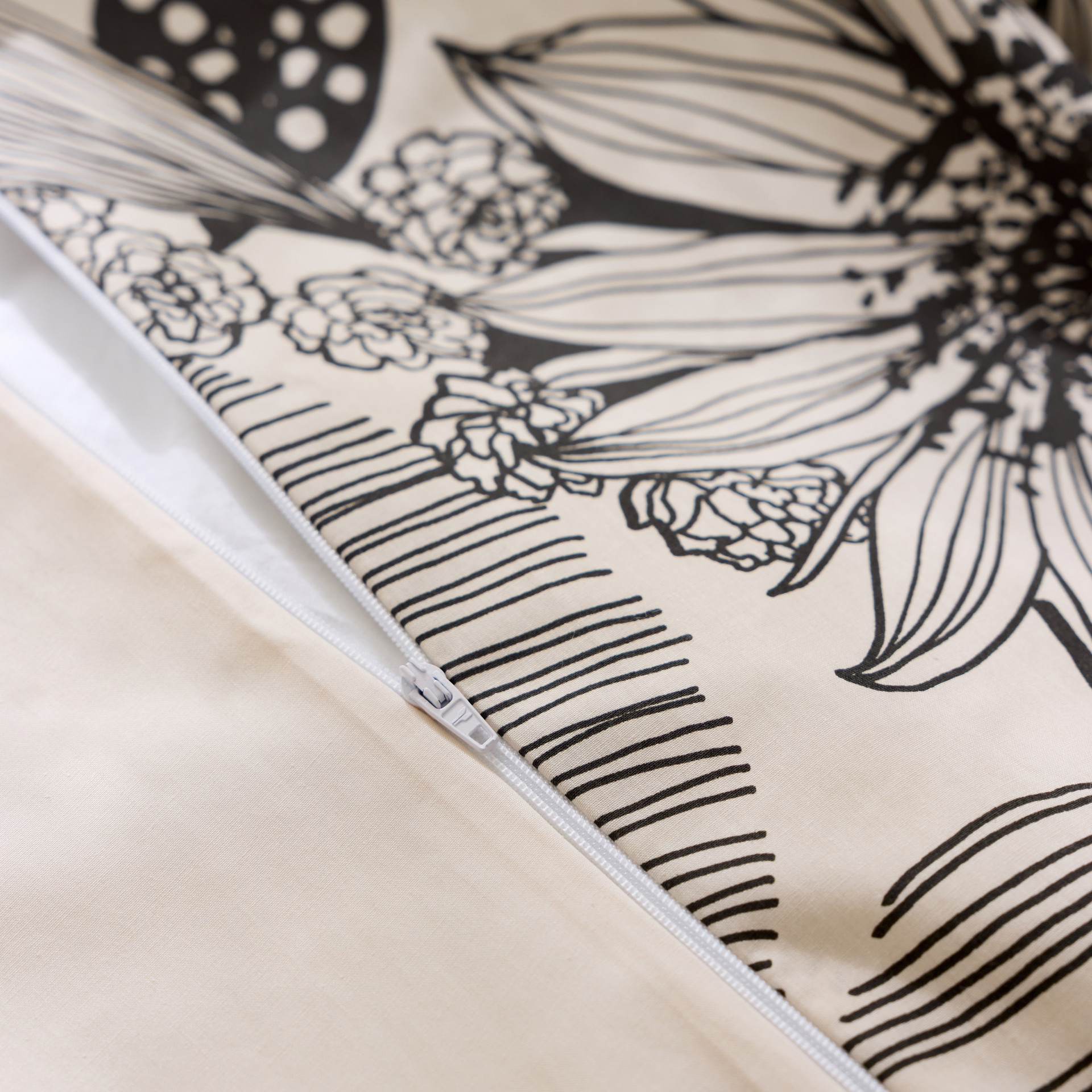 Ensemble de housse de couette et caches oreillers en percale de coton de 200 fils au pouce. L´impression au coeur de la fibre donne une haute tenue des couleurs, et le traitement « easy care » confère un toucher incroyablement souple au tissu.
