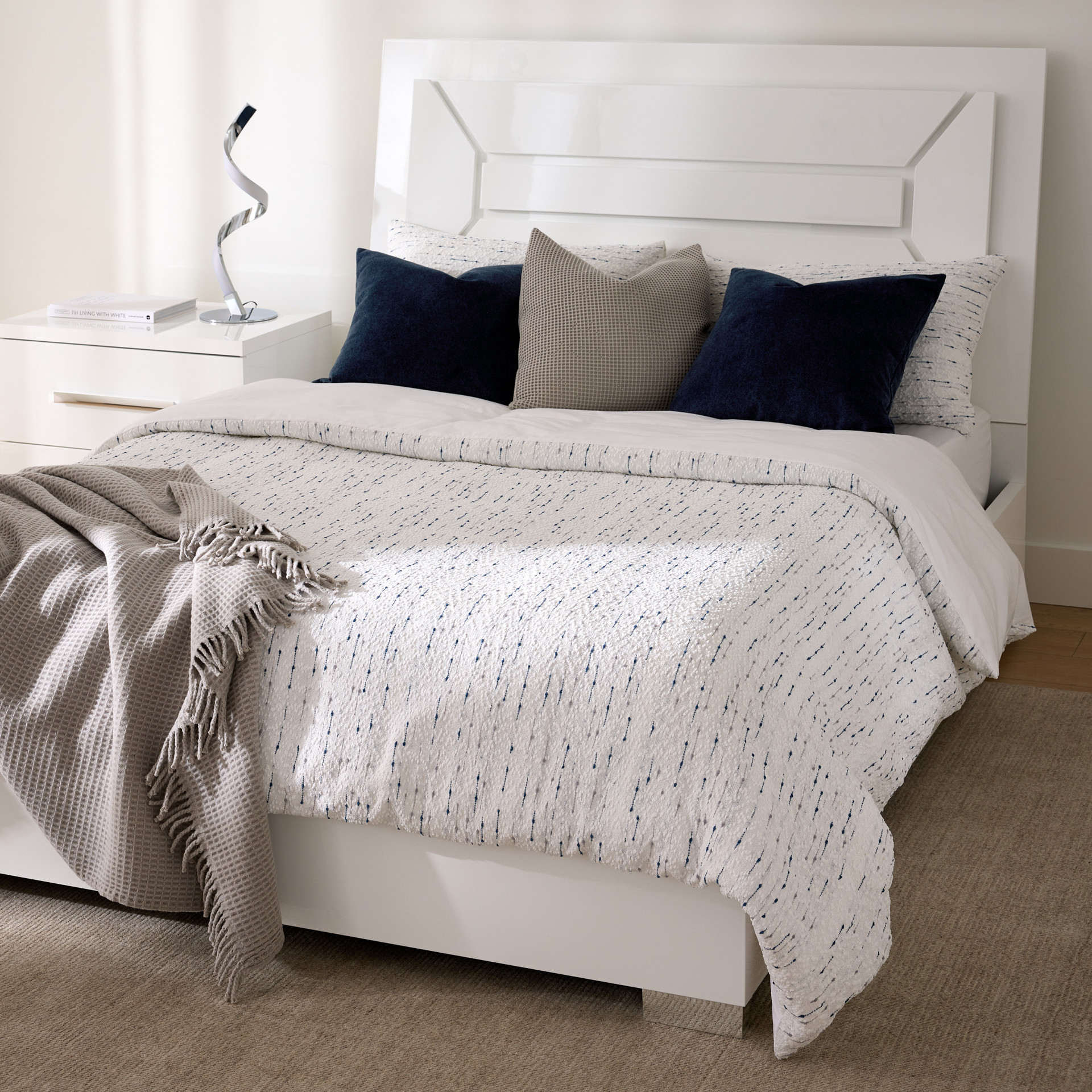 Cet ensemble inclut une housse de couette 90 x 92 po et deux cache-oreiller 20 x 28 po. Dessus en jacquard bouclé 100% polyester. Revers blanc uni, 100% coton percale, 200 fils par pouce.