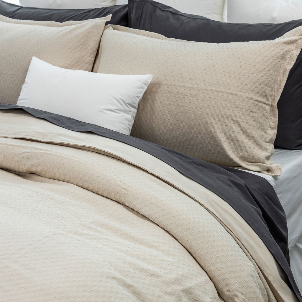 • Housse de couette Nina : 88x92 po, 100% coton et matelassé effet nid d'abeille d'un côté & 100% coton percale longue fibre 200 fils de l'autre.