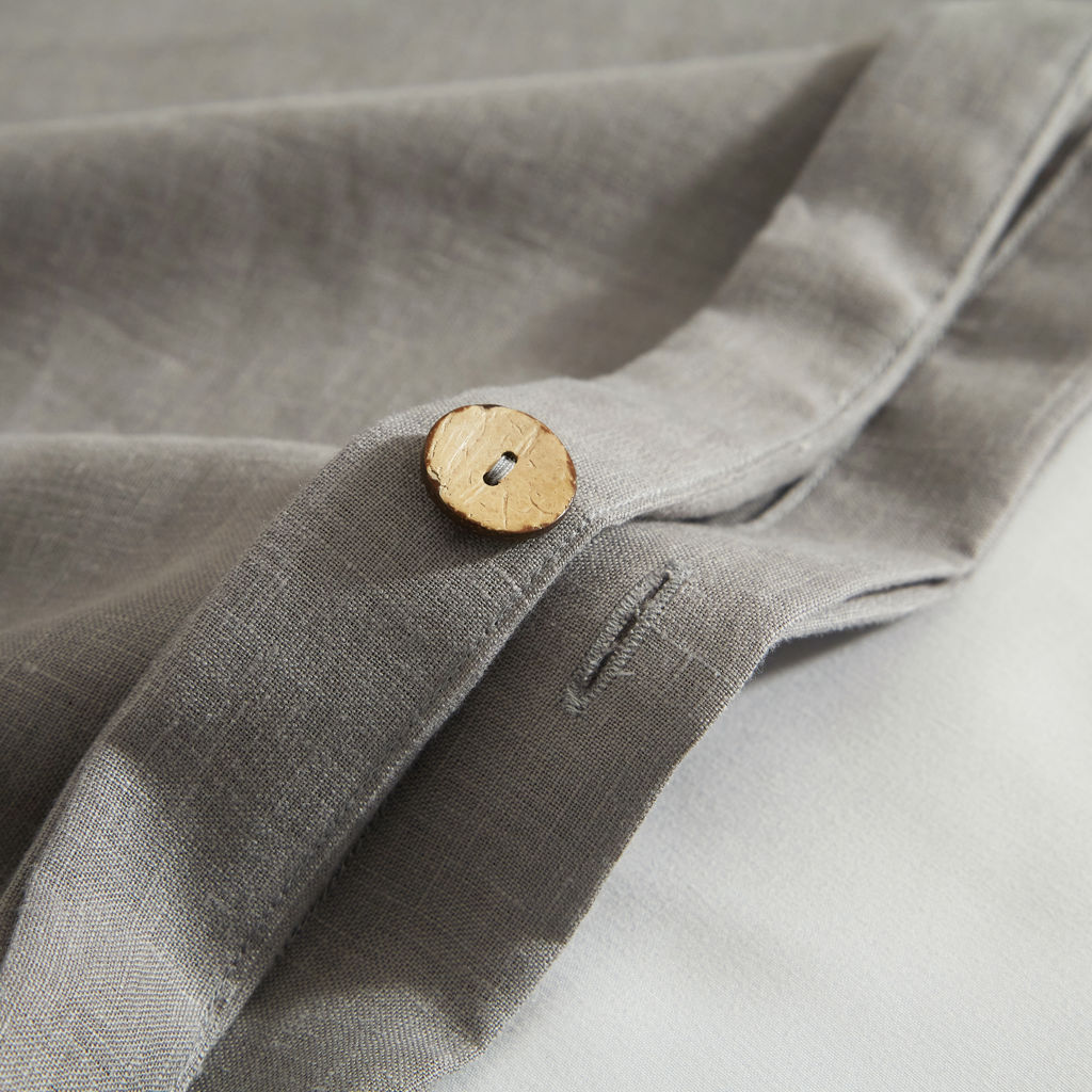La housse de couette est dotée d'un rabat à boutons cachés pour une finition impeccable, tandis que les taies d'oreiller sont munies d'une finition qui permet de maintenir les oreillers en place.