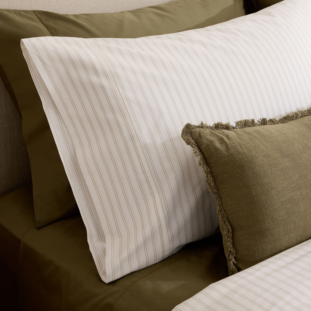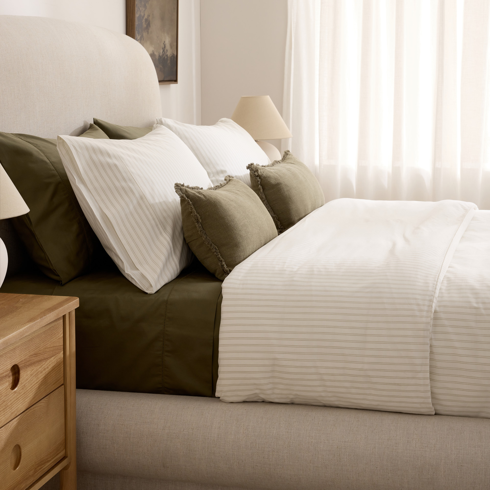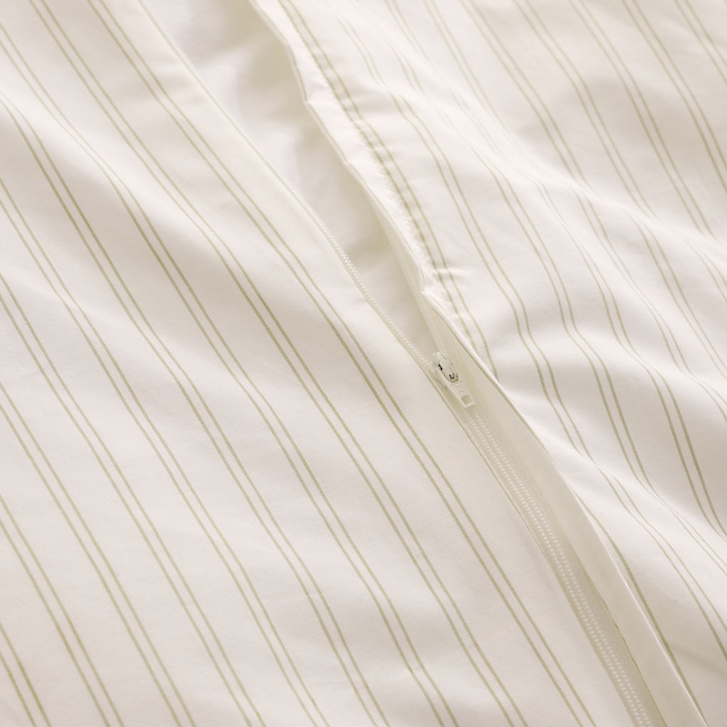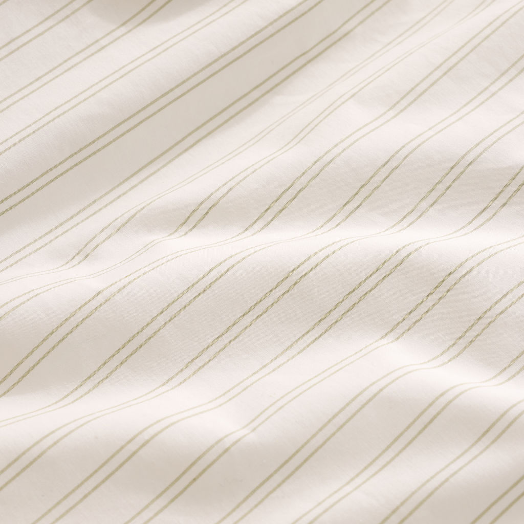 Créez une atmosphère douce et naturelle avec cet ensemble de housse de couette beige à fines rayures vertes.