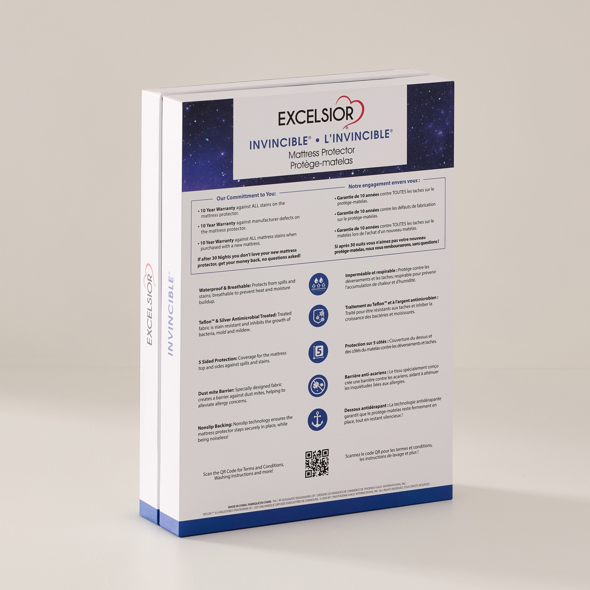 Le couvre-matelas Invincible comprend un tissu extensible et imperméable antidérapant pour bien s’ajuster à votre matelas, et offre une protection sur 5 côtés du matelas.
