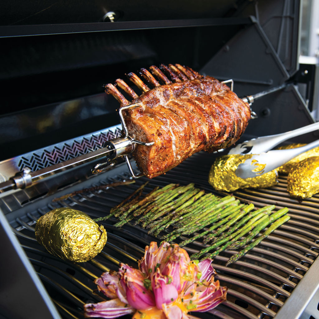 • Le gril Prestige P665RSIB est doté d'un brûleur arrière infrarouge et d'un ensemble de rôtissoire robuste pour préparer des repas parfaitement rôtis à la broche
