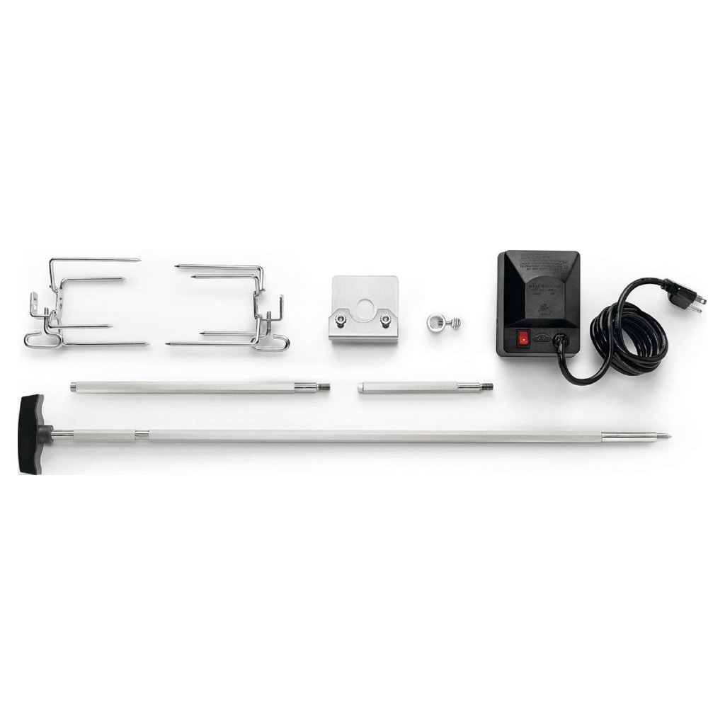 Le moteur robuste permet de faire tourner une charge équilibrée allant jusqu'à 26 lb (12 kg). Les deux fourches à quatre dents maintiennent fermement tous les aliments que vous désirez cuire à la broche et elles se serrent solidement à l'aide de vis moletées faciles à utiliser.
