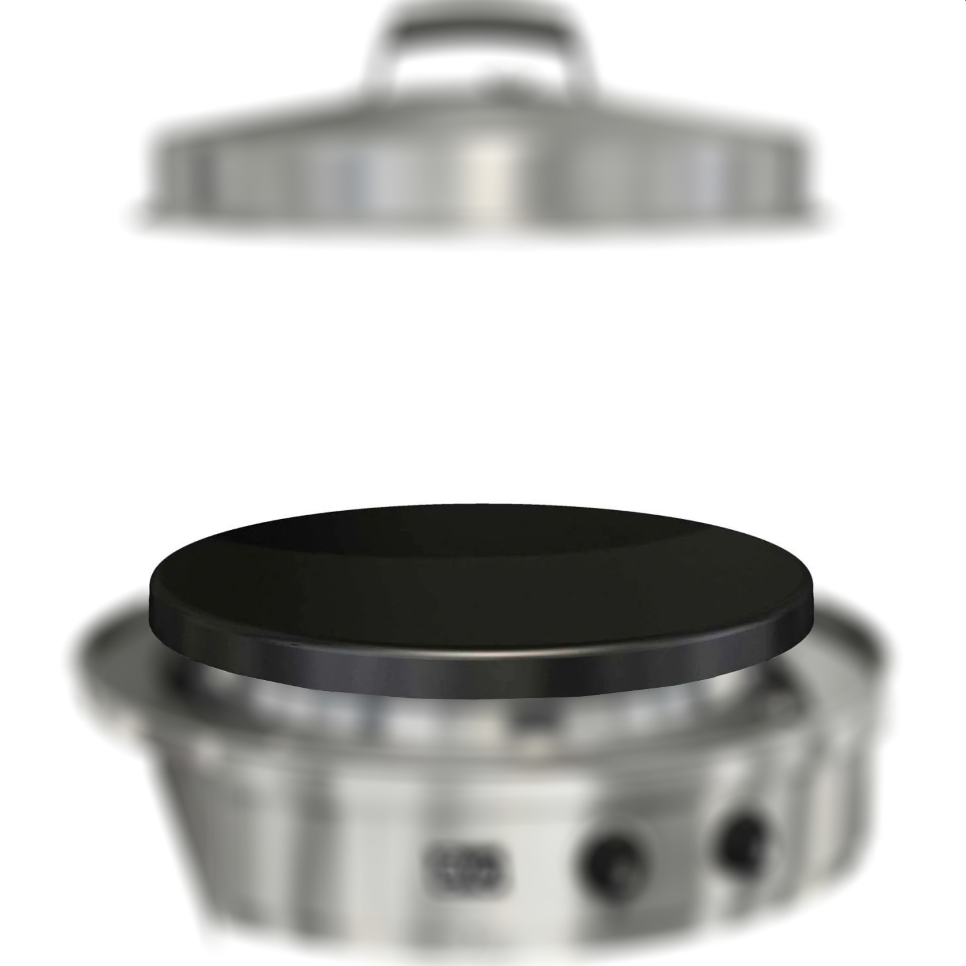 La surface de cuisson est recouverte d'une finition en céramique noire durable qui empêche l'oxydation. Le revêtement en céramique est un processus secondaire qui est fondu à la surface de cuisson dans un four à 1500 ° F.