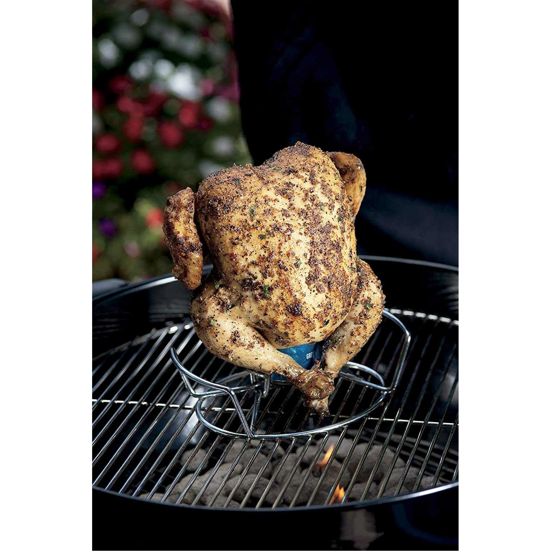 Utilisez la grille de cuisson de volaille facile demploi et préparez un poulet à la bière qui ravira tout le monde. La grille de cuisson de volaille donne une peau croustillante et une viande tendre. Déposez une canette de 355 ml de votre bière ou boisson préférée sur lanneau central et placez le poulet sur la canette.