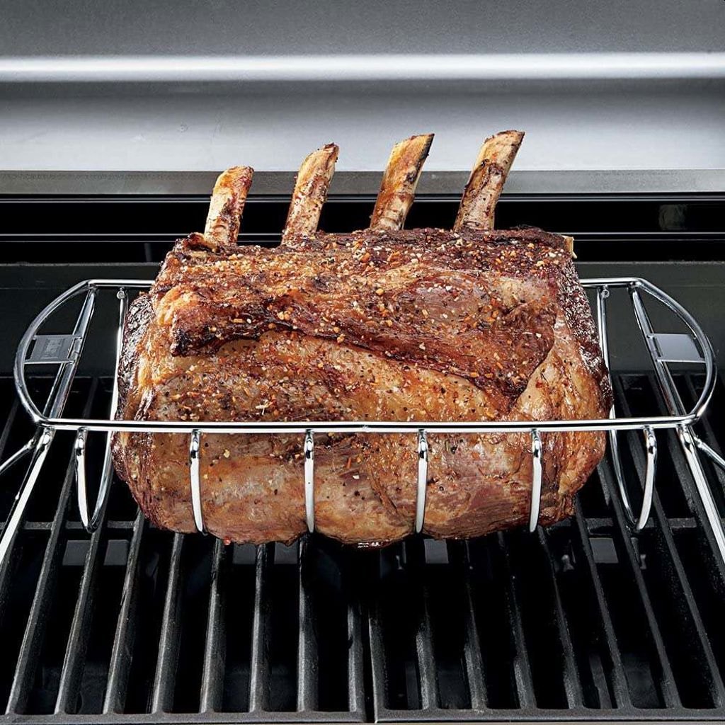 Imaginez des côtes levées dont la viande se détache de los. Des rôtis succulents qui tirent leurs saveurs de la fumée sous le couvercle du barbecue. La conception deux-en-un de la grille de cuisson sur barbecue Premium vous permet d'y placer plusieurs côtes levées pour maximiser l'espace sur vos grilles de cuisson et peut aussi servir de panier robuste pour des rôtis juteux.