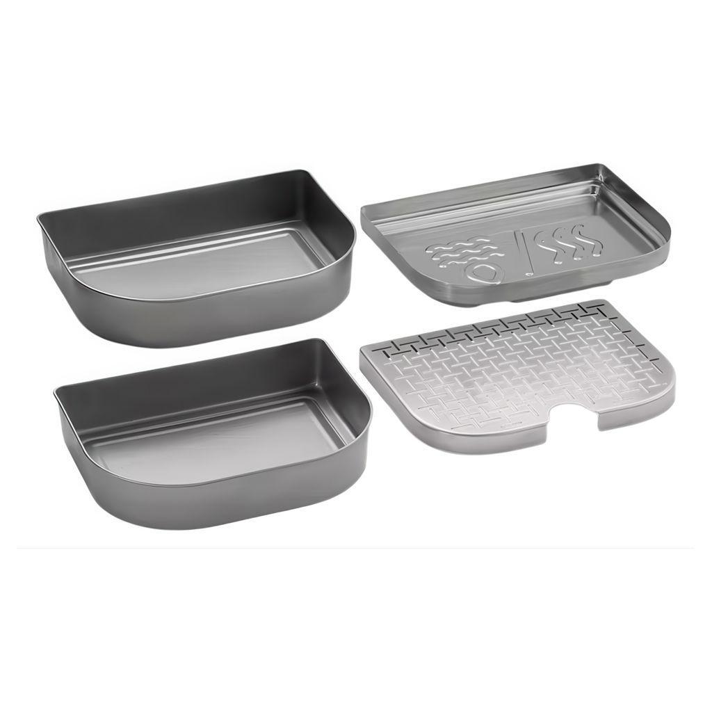 Comprend : Réservoir de cuisson vapeur/fumage, plaque de cuisson vapeur réversible et chauffe-plats (2).