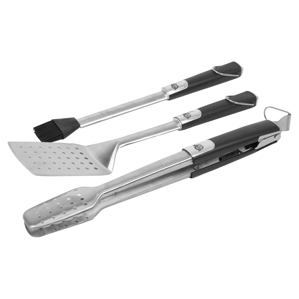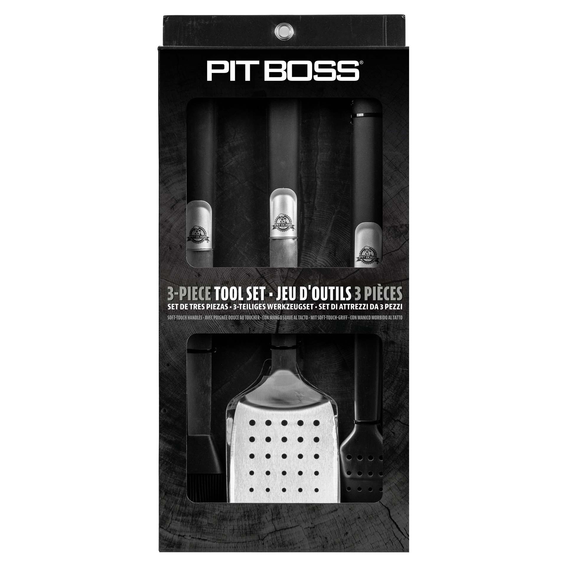 L'ensemble d'outils 3 pièces Pit Boss Soft Touch contient tous les éléments essentiels pour faire de vous le patron du gril. Cet ensemble pratique comprend une paire de pinces verrouillables, une spatule à fente et un pinceau à badigeonner en silicone.