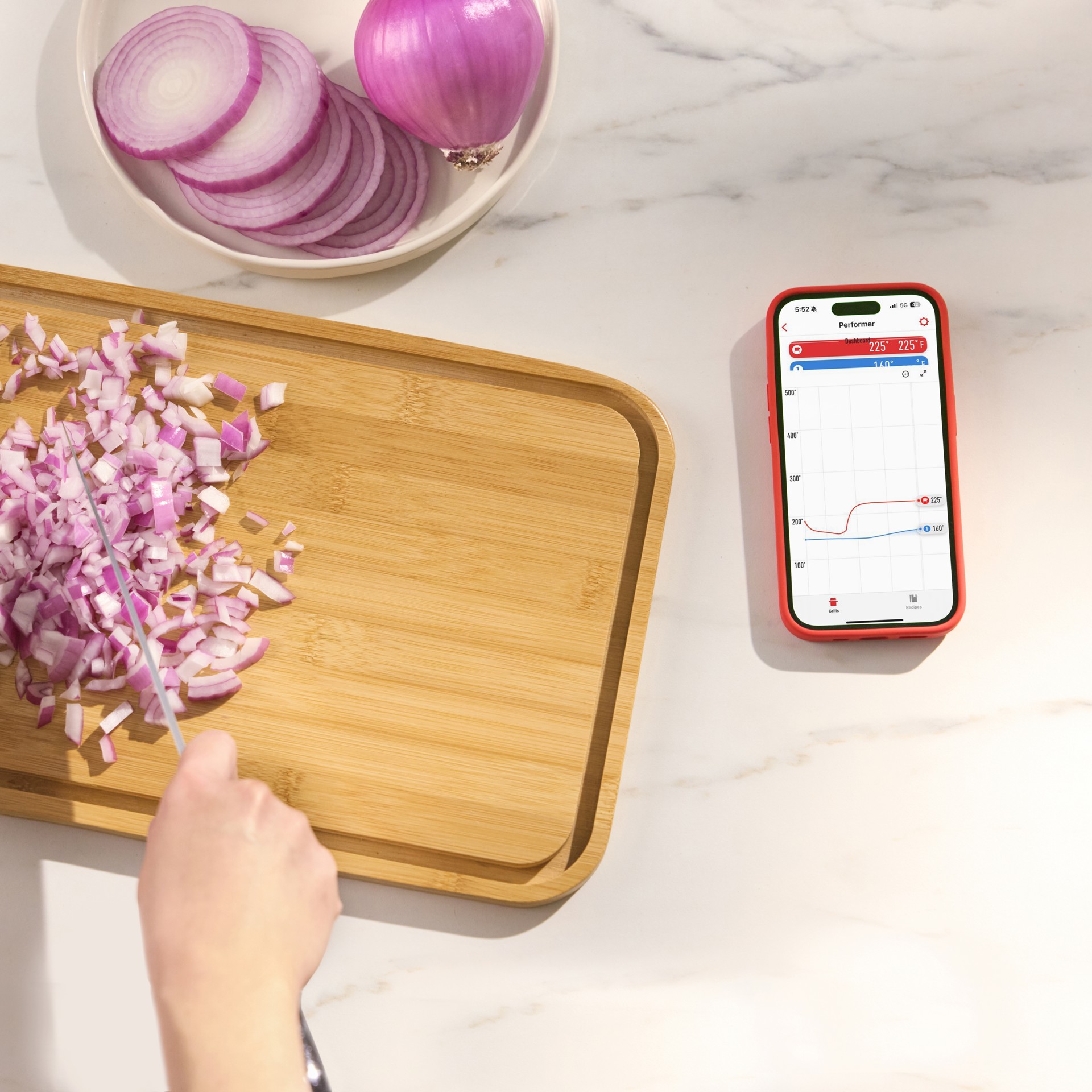 De plus, un capteur ambiant situé à l'extrémité de la sonde suit la température près de vos aliments, afin que vous sachiez quand ajuster la chaleur. Disponible en plusieurs couleurs pour faciliter la surveillance de plusieurs aliments à la fois.