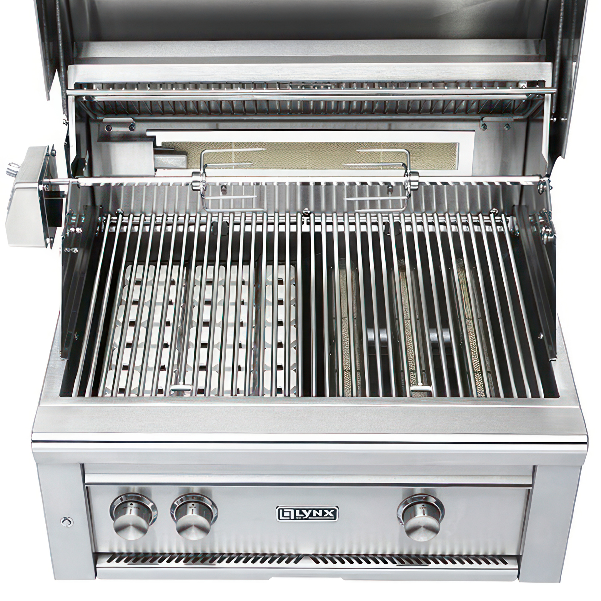 • Excellence de la cuisson lente - une rôtissoire à deux positions alimentée en interne par un moteur à trois vitesses robuste et un brûleur infrarouge arrière délivrant jusqu'à 14 000 BTU