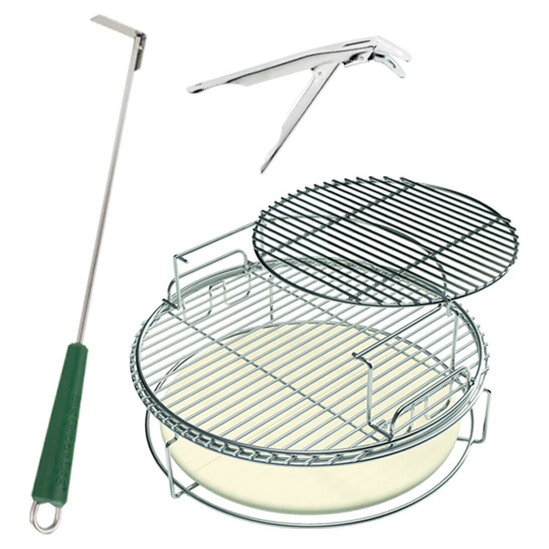 • Deux convEGGtors Demi-Lune (pour la cuisson indirecte, fumer, rôtir et la boulangerie)