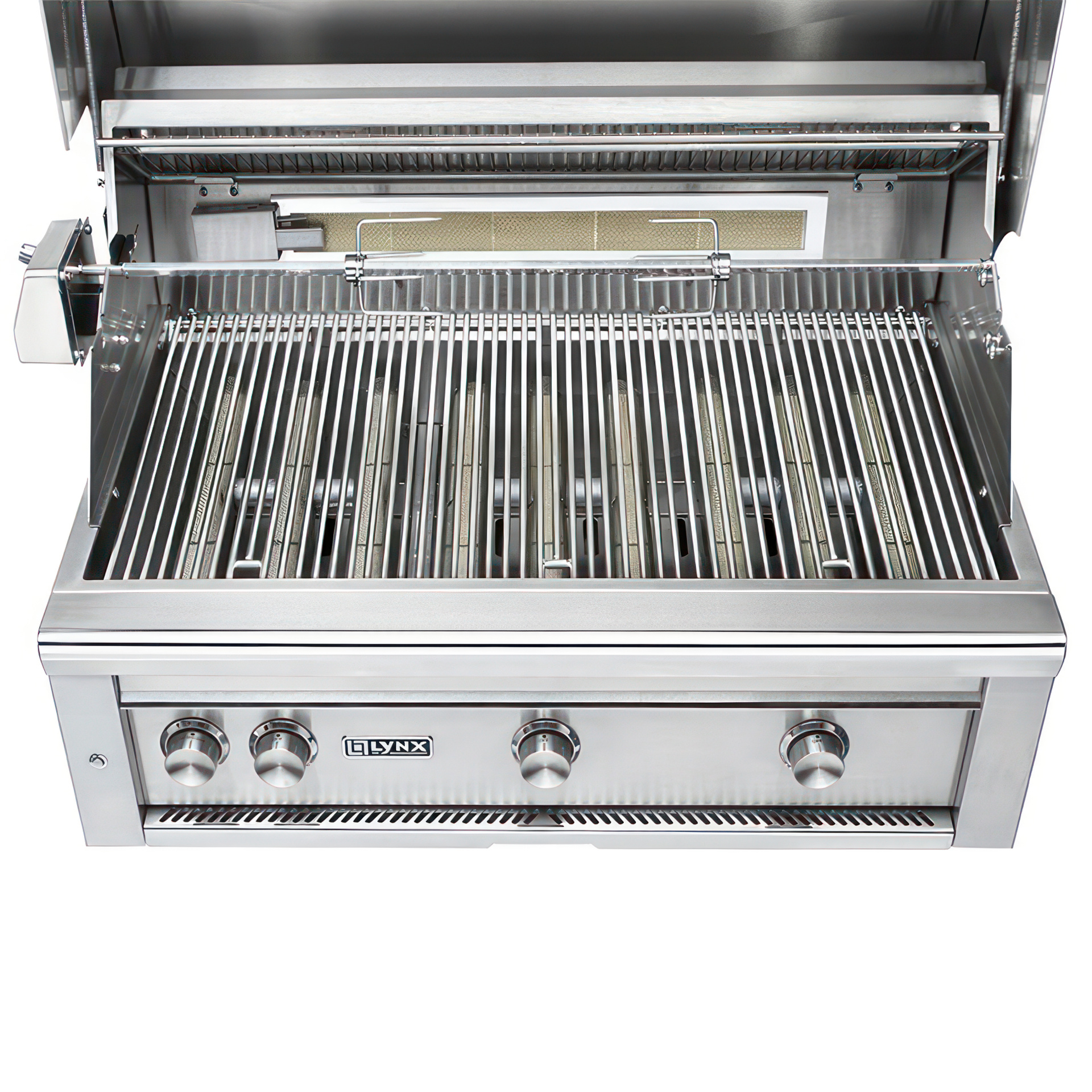 • Excellence de la cuisson lente: rôtissoire à deux positions alimentée en interne par un moteur robuste à trois vitesses et un brûleur infrarouge arrière délivrant jusqu'à 14 000 BTU