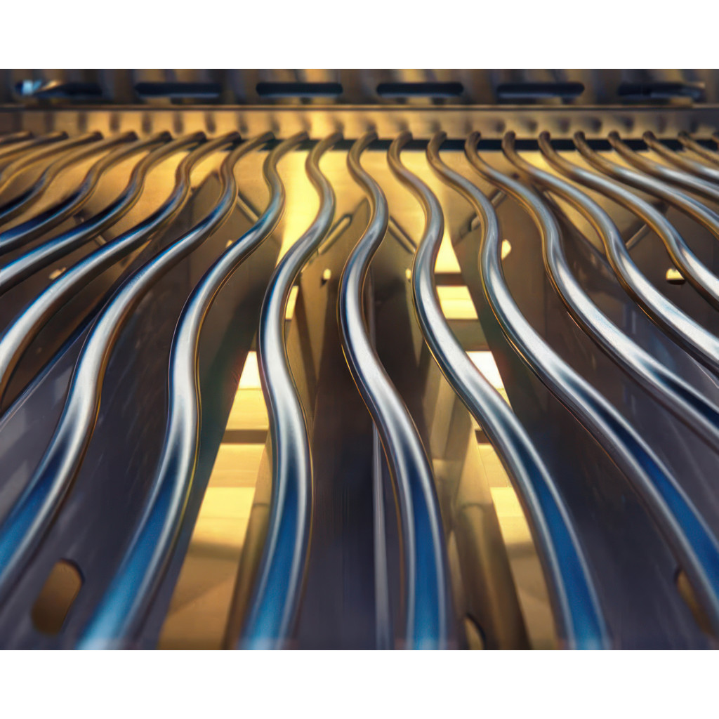La construction en acier inoxydable offre durabilité et style. Les grilles de cuisson en acier inoxydable accueillent vos aliments, fournissant une chaleur uniforme ; vous saurez qu'il s'agit d'un Napoléon doté des grilles de cuisson emblématiques WAVE™ pour ces marques de saisie distinctives.