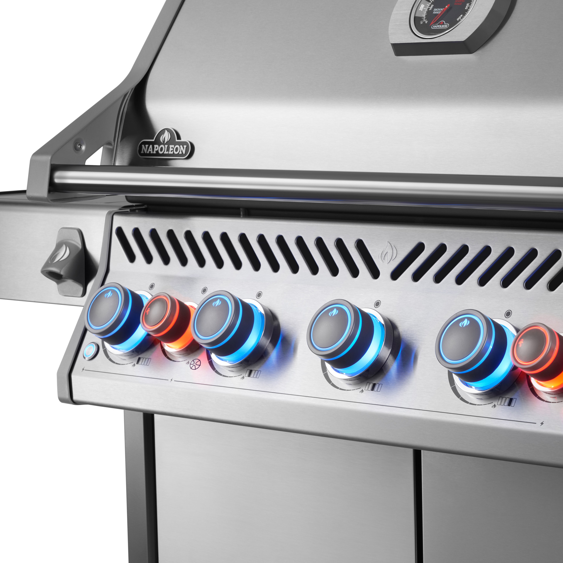 - BOUTONS DE SÉCURITÉ LUMINEUX : Les boutons de commande rétroéclairés sont illuminés par des LED qui deviennent rouges lorsque le gaz est allumé, ce qui facilite et sécurise l’utilisation du barbecue après la tombée de la nuit