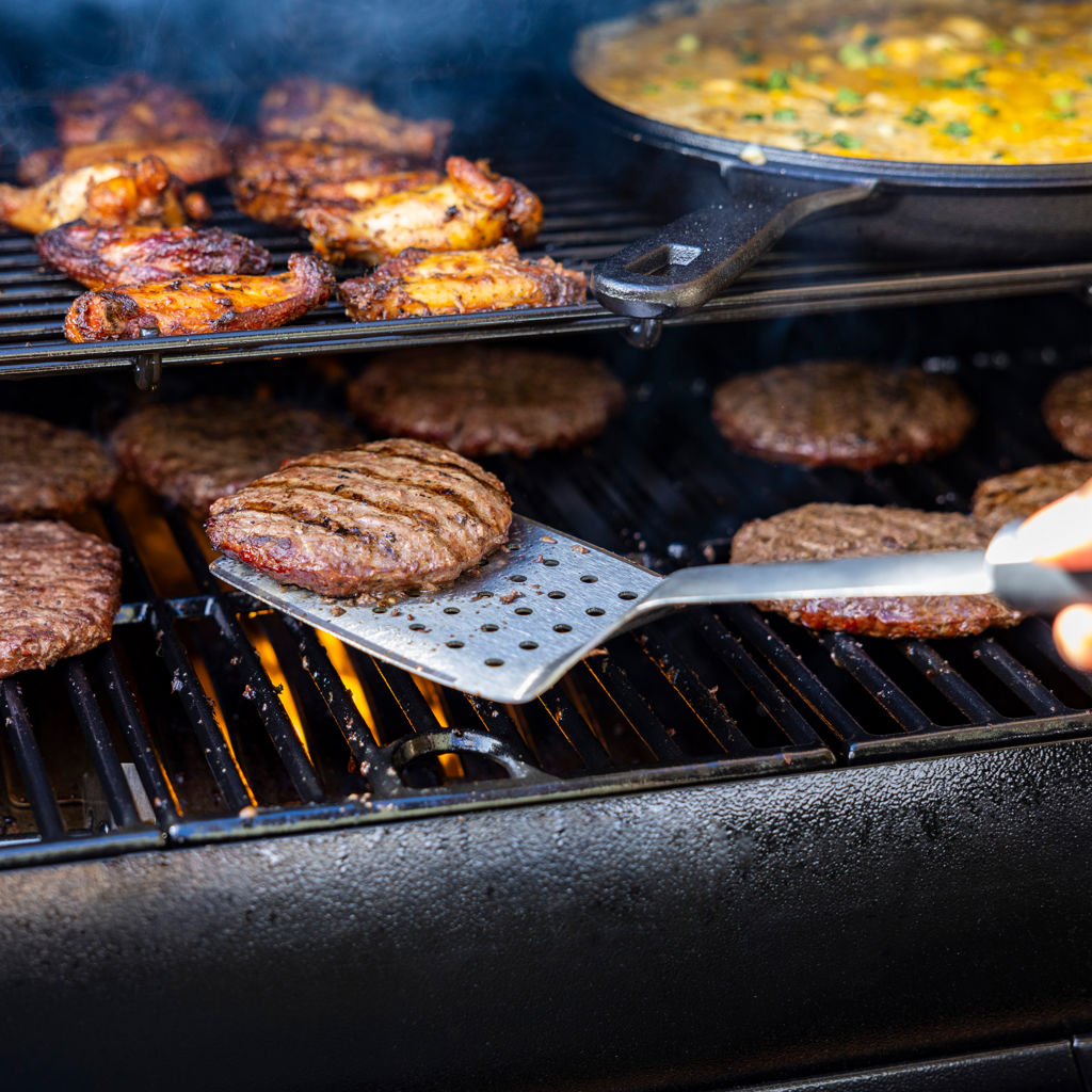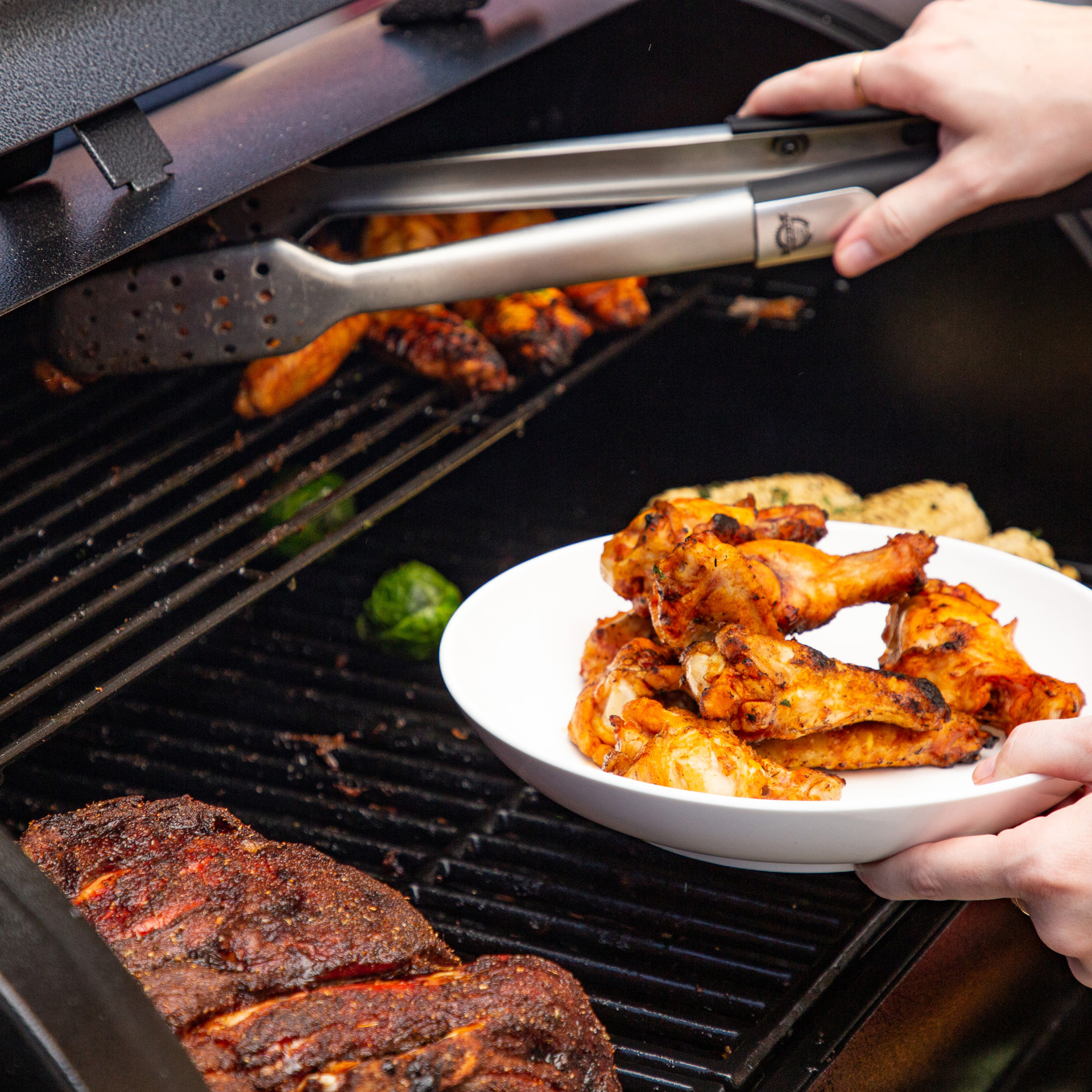 L'ensemble d'outils 3 pièces Pit Boss Soft Touch contient tous les éléments essentiels pour faire de vous le patron du gril. Cet ensemble pratique comprend une paire de pinces verrouillables, une spatule à fente et un pinceau à badigeonner en silicone.