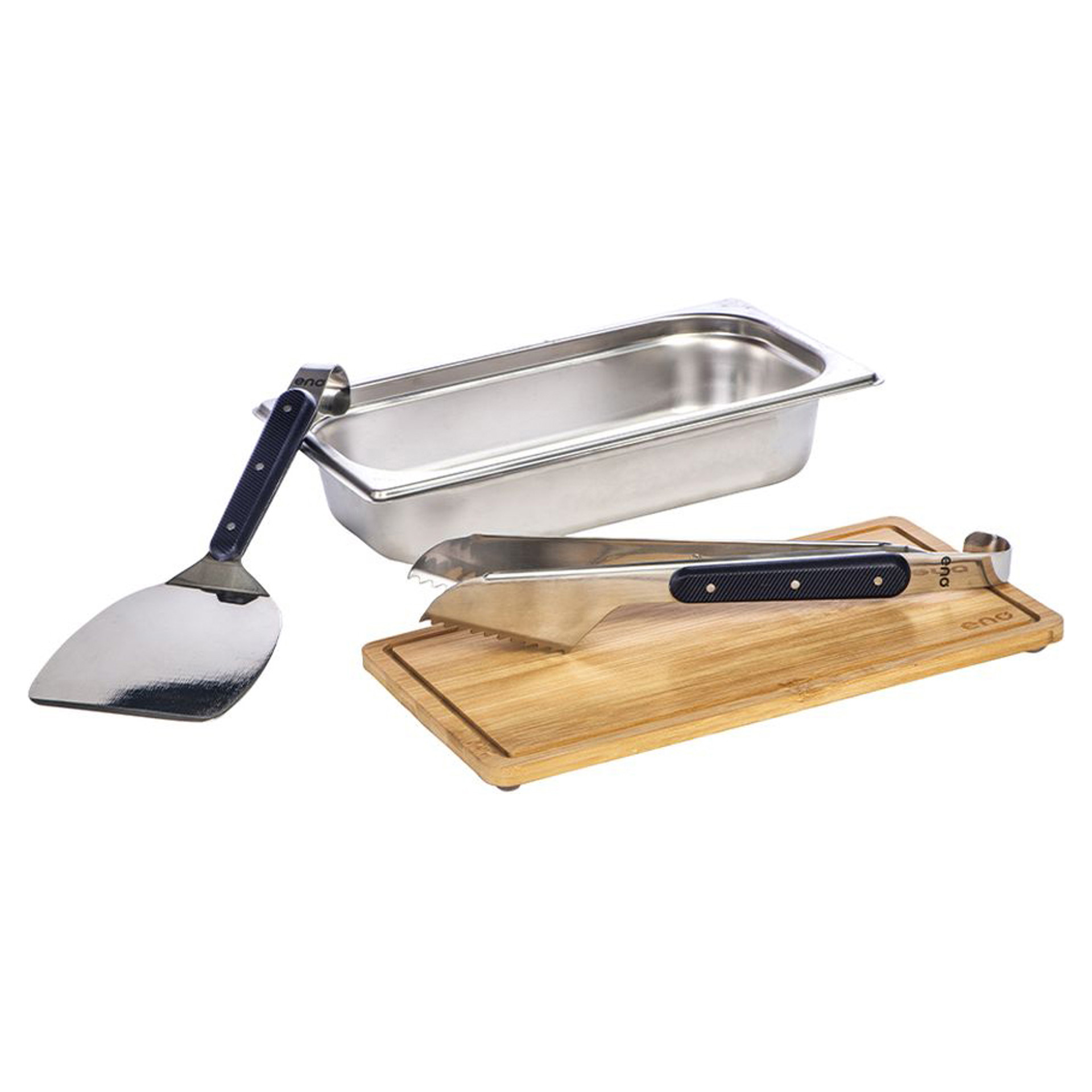 Le coffret du chef de ENO réunit dans un pack tous les outils essentiels pour cuisiner à la plancha comme un vrai chef sans salir votre plan de travail !