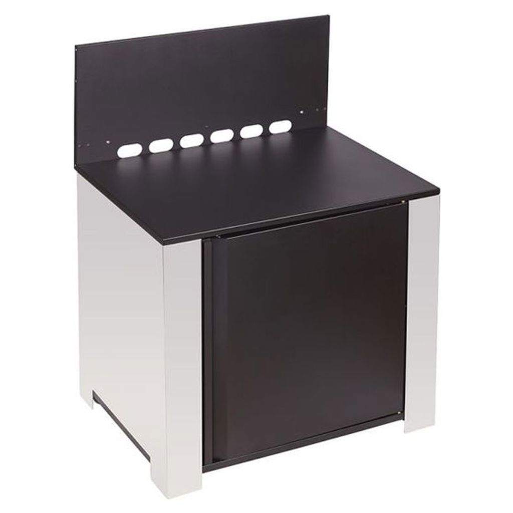 Structure et plateau surbaissé en acier galvanisé noir. Porte et fonds en acier galvanisé noir et côté en inox. Parfait pour acceuillir votre nouvelle Plancha!