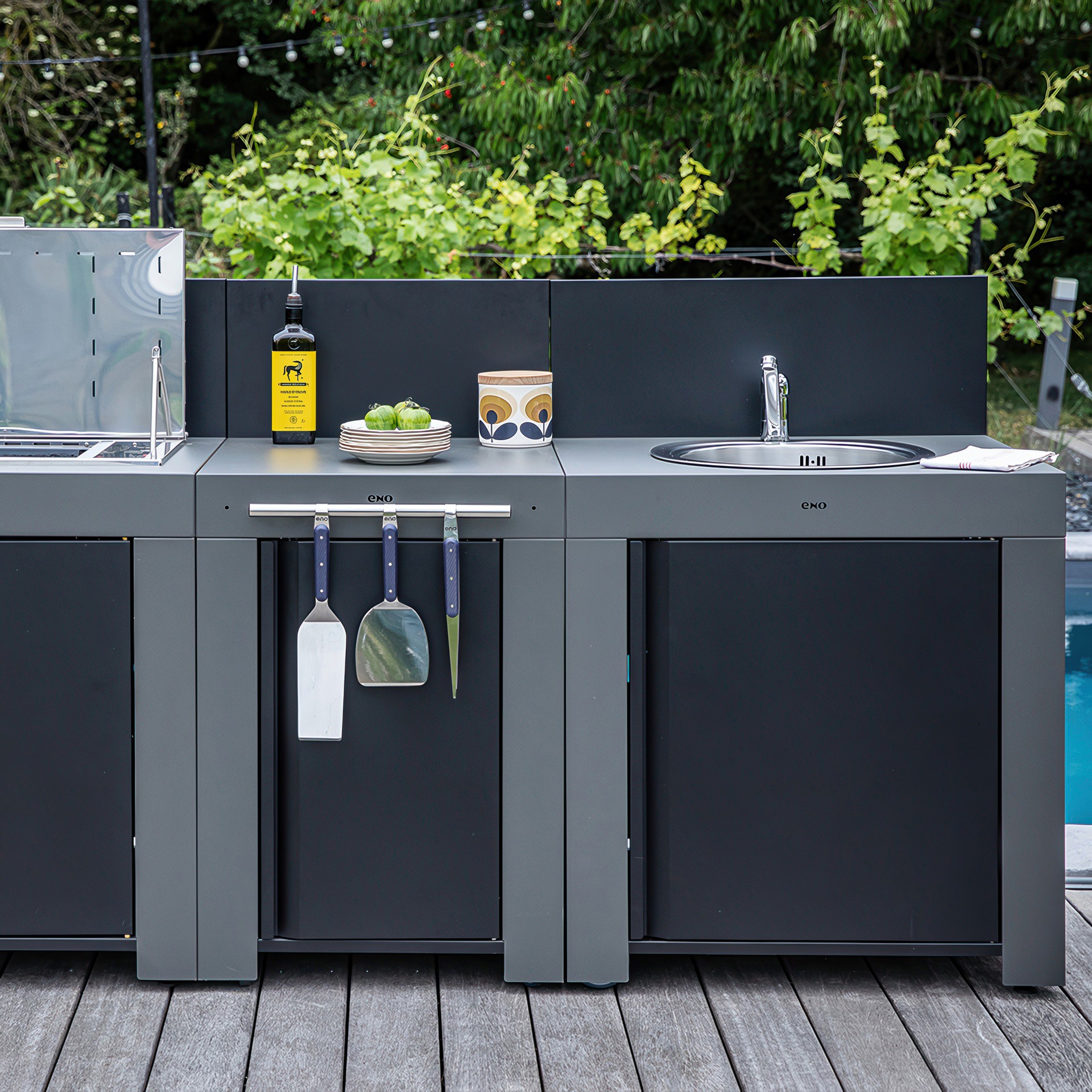 Elle permet de faire un ensemble complet avec le meuble Felix ou de compléter sa cusisine d'exterieur. Plus de convivialité? Installez un comptoir bar sur l'arrière de la crédence pour profiter pleinement de ses amis tout en cuisinant.